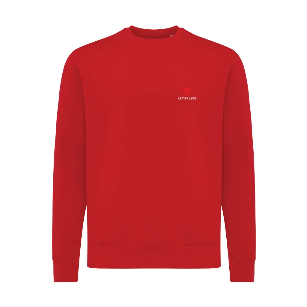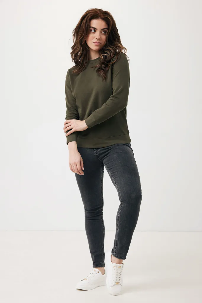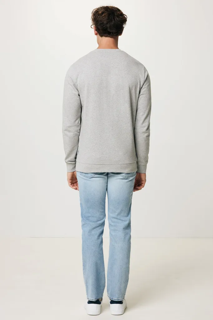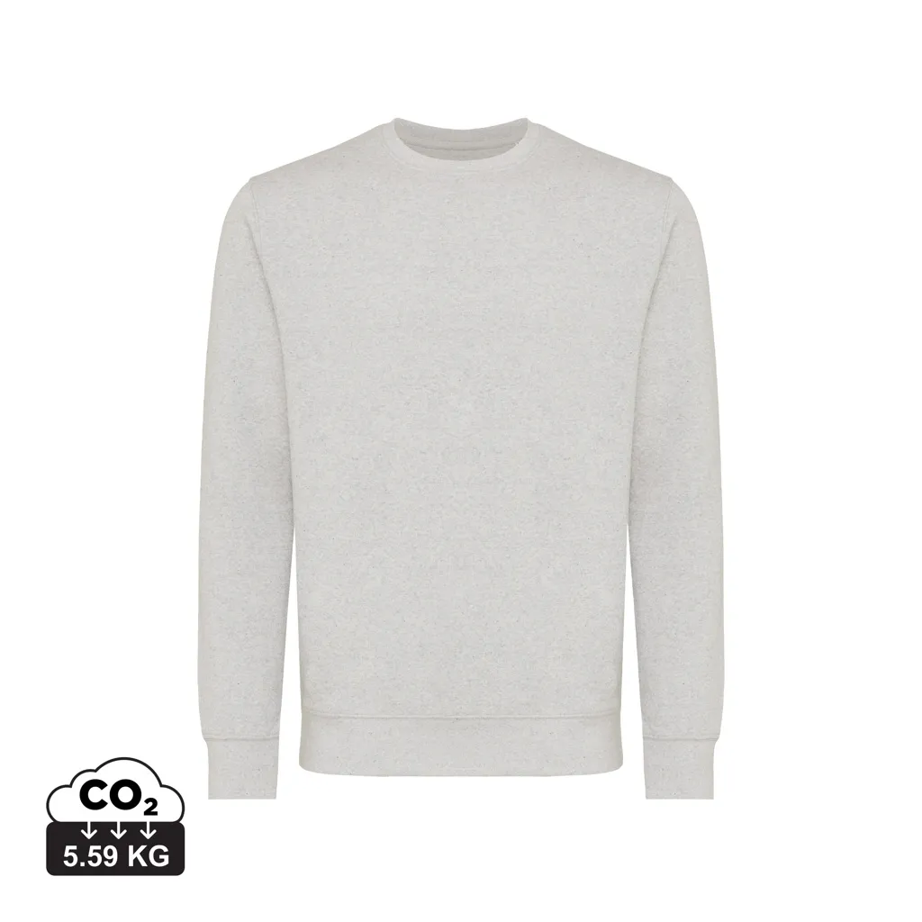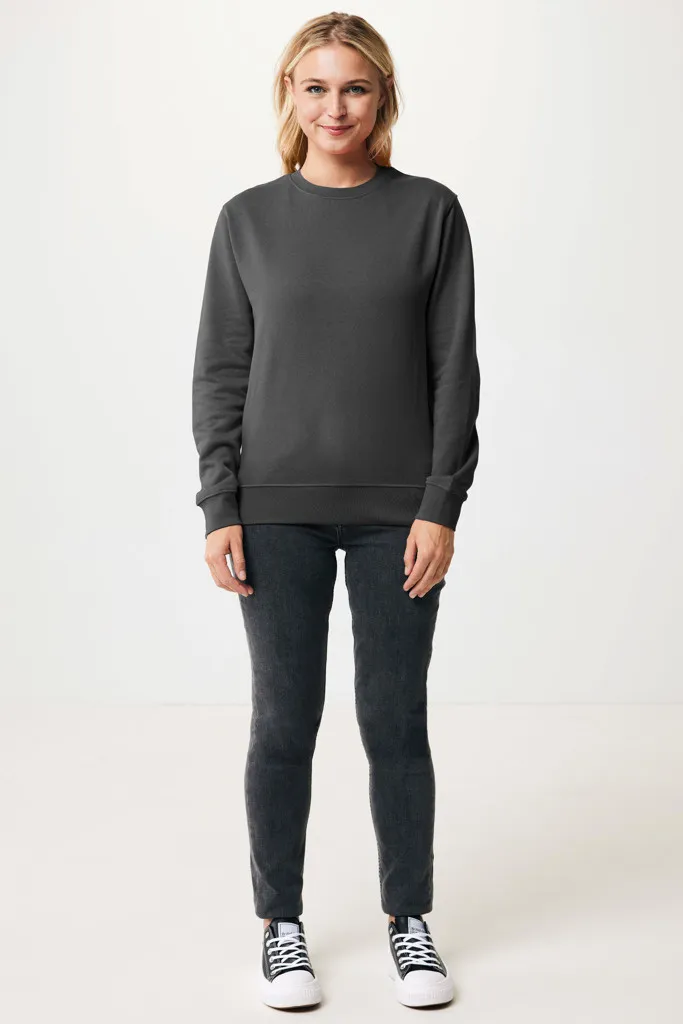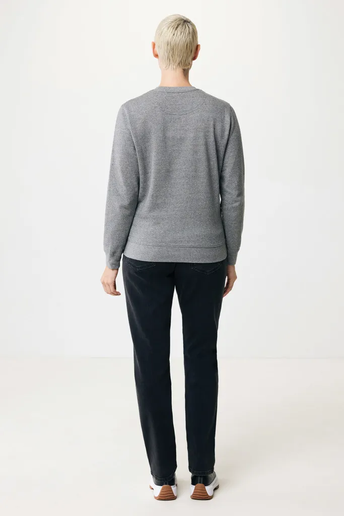 Unisex modern fit crew neck made from 100% cotton, of which 70% organic and 30% recycled, 280 G/M². The crewneck has long sleeves and 1x1 rib at neckline, cuffs and bottom hem. The inside is soft-brushed fleece for extra comfort. The use of genuine recycled & organic fabric materials and environmental impact claims are guaranteed, by using the AWARE™ disruptive physical tracer and blockchain technology. By scanning the QR code, you will gain access to a dedicated digital passport of the product. 2% of proceeds of each sold product will be donated to Water.org. This product is OEKO-TEX® STANDARD 100 2303045 Centexbel certified. Due to the nature of recycled yarns, impurities and color variations may appear.