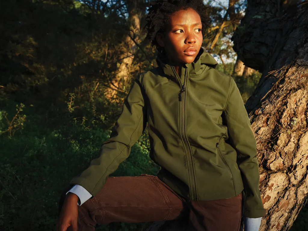 Women’s soft shell jacket made from recycled polyester with 300 G/M² 3-layer fabric, using recycled TPU membrane and soft microfleece inside. The jacket has a reversed zipper at the front and zip pockets in the side panel seams. It has an adjustable hood with inside stoppers for a better protection. Sleeve cuffs are adjustable with Velcro closing. Thoughtful touch of extra zip puller and clean finish on inside with recycled binding. The jacket is water repellent with BIONIC-FINISH® ECO (fabric is with recycled TPU membrane up to 5000mm waterproof). Windproof and breathable up to 3000g/m2/24hrs. The use of genuine recycled materials and environmental impact claims are guaranteed, by using the AWARE™ disruptive physical tracer and blockchain technology. By scanning the QR code, you will gain access to a dedicated digital passport. 2% of proceeds of each sold product will be donated to Water.org. This product is OEKO-TEX® STANDARD 100 certified. Also available in men fit.
