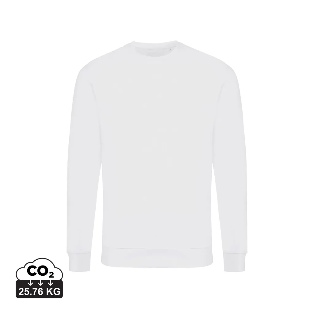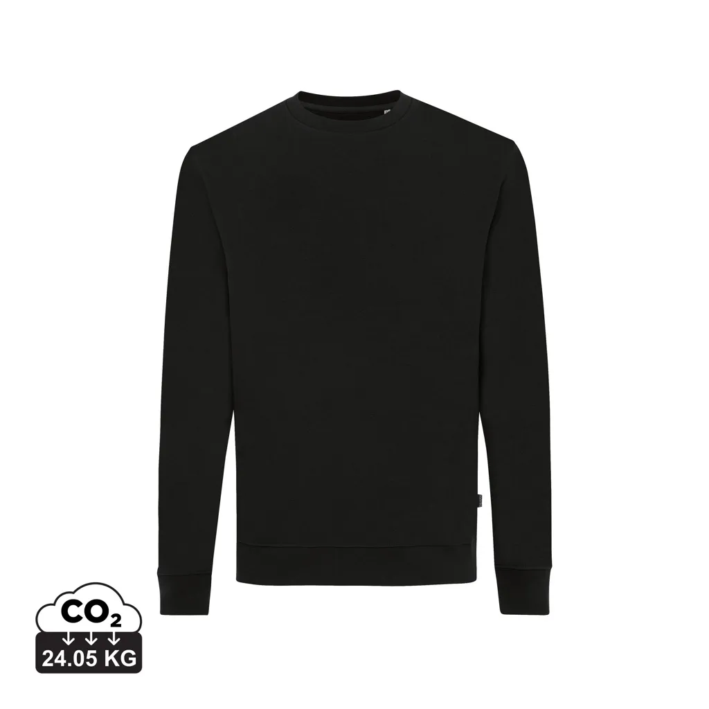 This unisex crew neck in regular fit is a comfortable, basic sweater and suited for many occasions. It has a round neckline, long sleeves and 1x1 rib at neck collar, bottom hem and cuffs. The clean finishing with herringbone tape at the inside back neck and the small Iqoniq brand label in the side seam are nice finishing details. The composition is 100% cotton, of which 50% recycled and 50% organic, in 340 G/M². No mix with plastics (such as polyester), so after life can be recycled into new cotton products. The inside is soft-brushed fleece for extra comfort. The use of genuine recycled & organic fabric materials and environmental impact claims are guaranteed, by using the AWARE™ disruptive physical tracer and blockchain technology. Every Iqoniq product has a unique QR label. By scanning this QR, you will gain access to a dedicated digital passport of the product. 2% of proceeds of each sold product will be donated to Water.org.