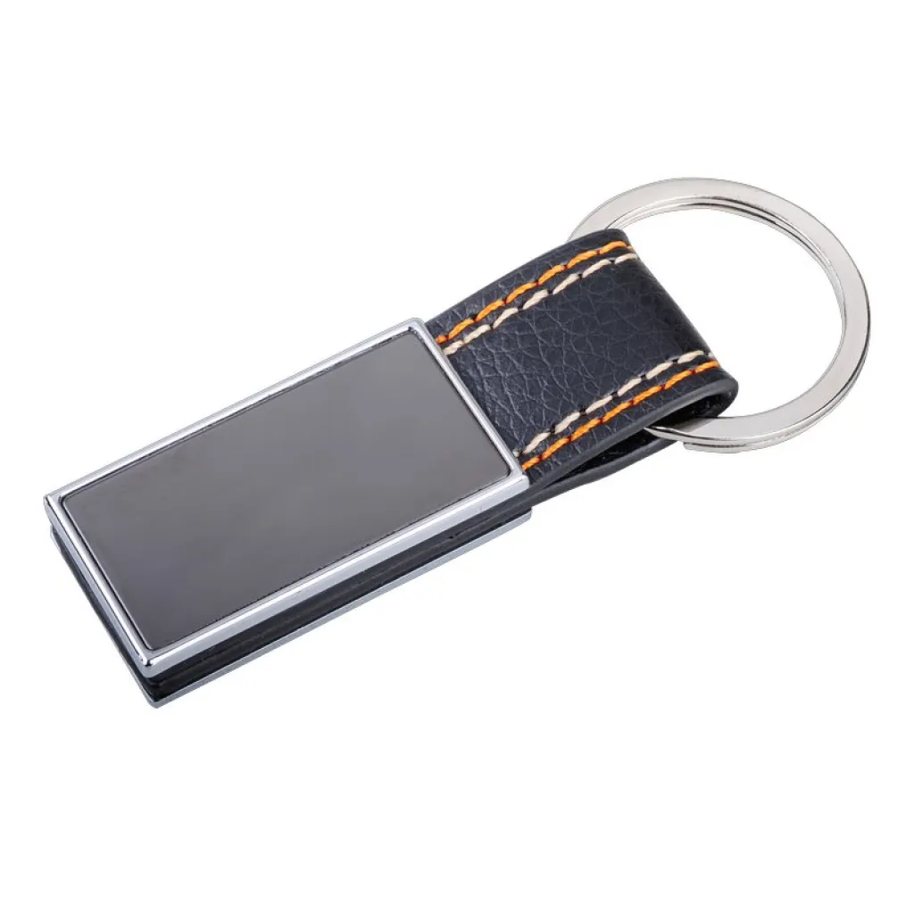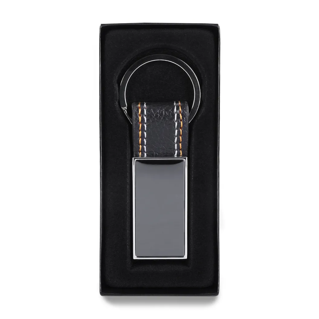 Metal Keychain with PU and Quilting in Black Gift Box.