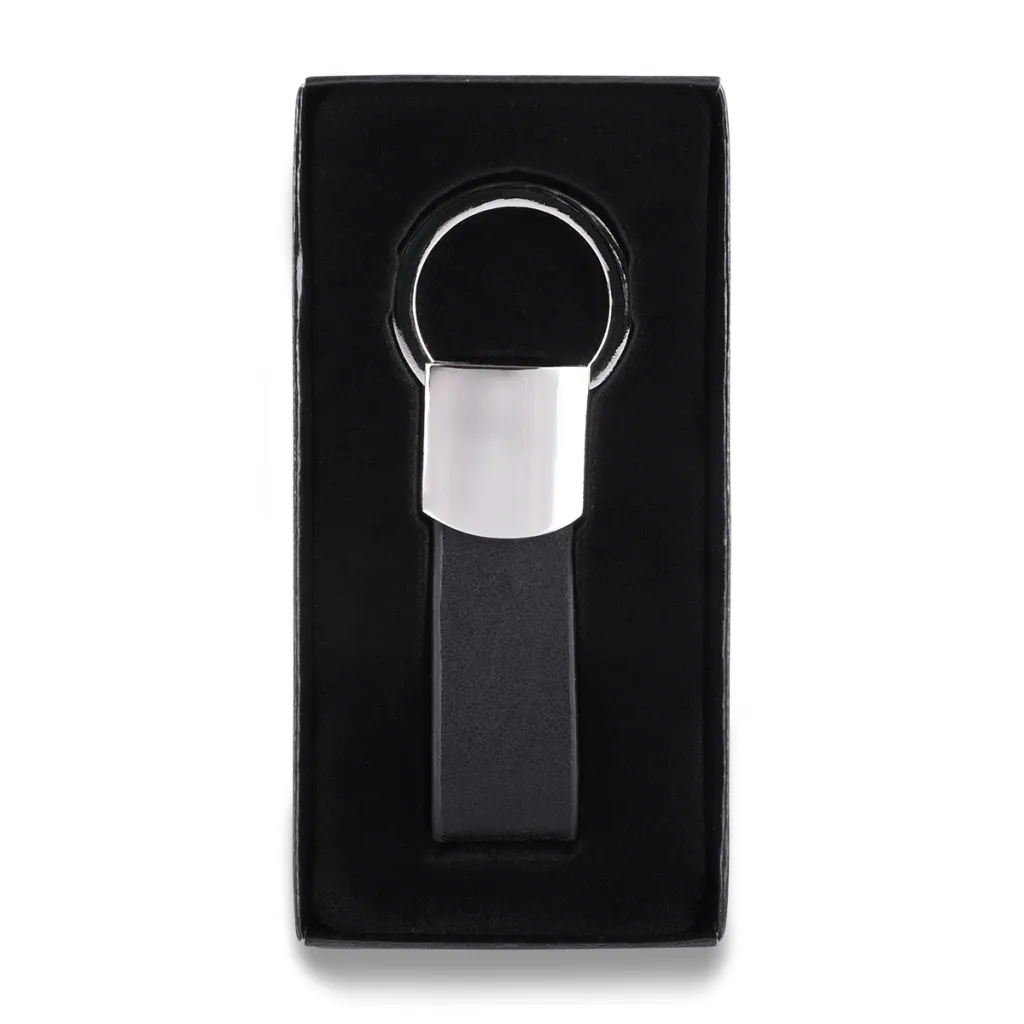 Metal and PU Keychain in Black Gift Box.