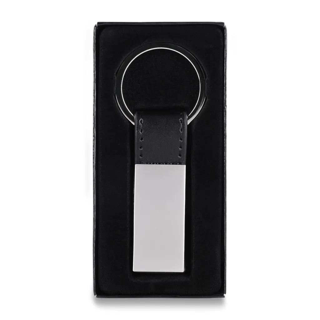 Metal and PU Keychain in Black Gift Box.