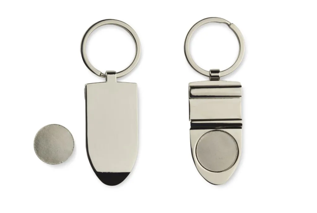 It's a perfect example how to combine great look and functionality. Metal key ring besiide its traditional function is also equipped with a troley cart coin , mobile devices stand and a bottle opener. Marking can be placed on the metal surface of the product.
