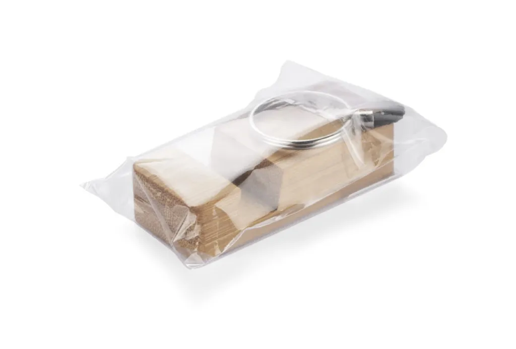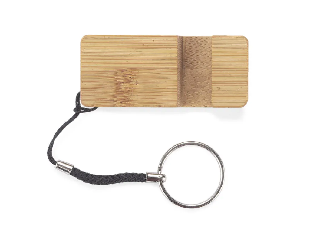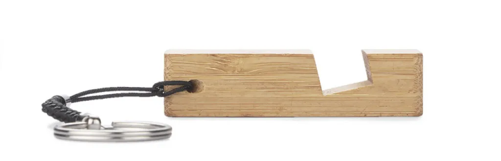 PENDE is a practical bamboo keychain that can also be used as a phone stand.