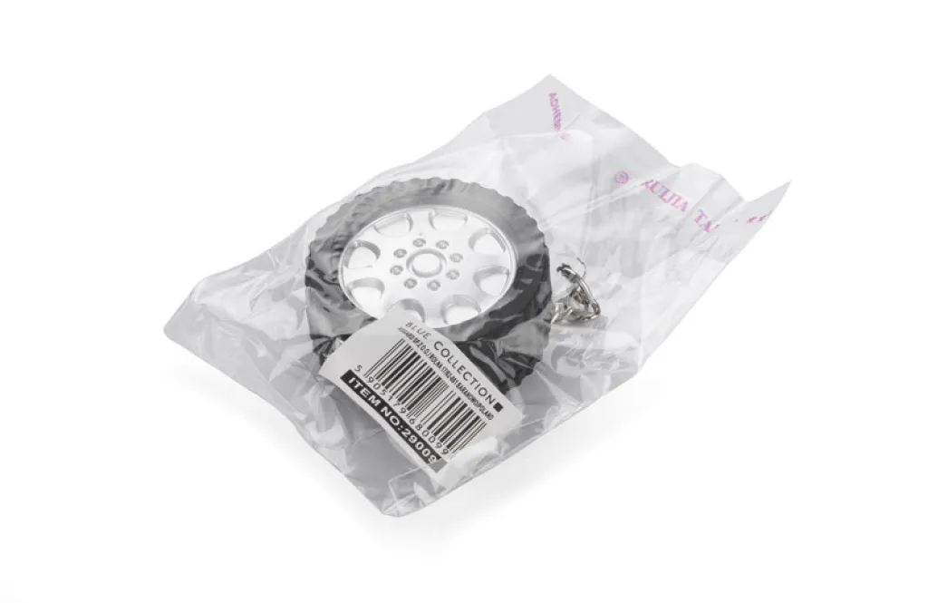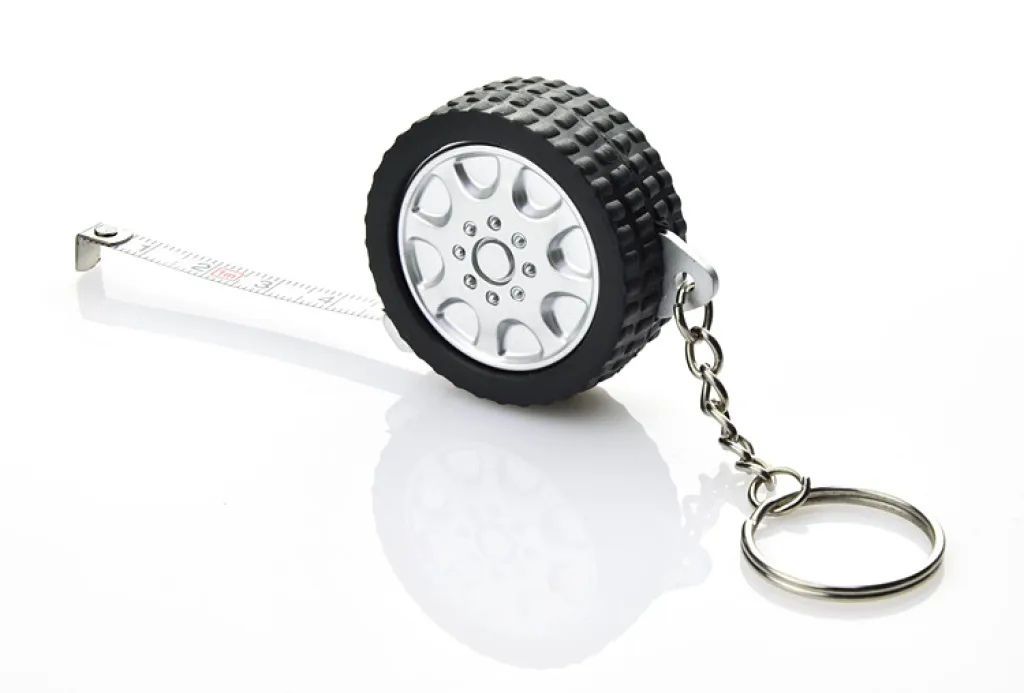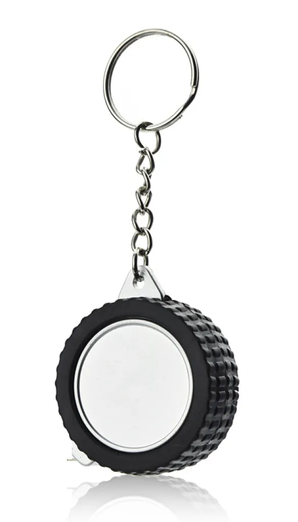 Tyre-shaped keychain – tape measure, 1m long. This article is made of plastic, imprint might be made on the reverse.