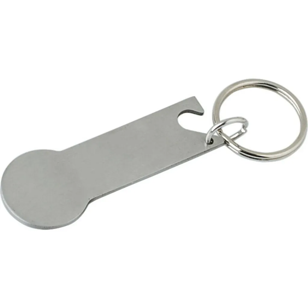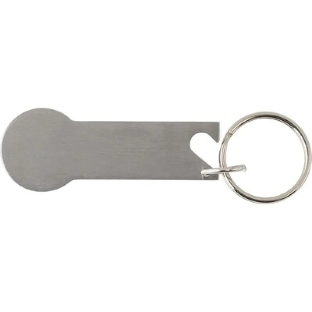 Stainless steel keyring, bottle opener, coin for shopping carts