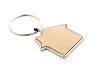 House shaped metal keyring with bamboo insert. In kraft paper box.