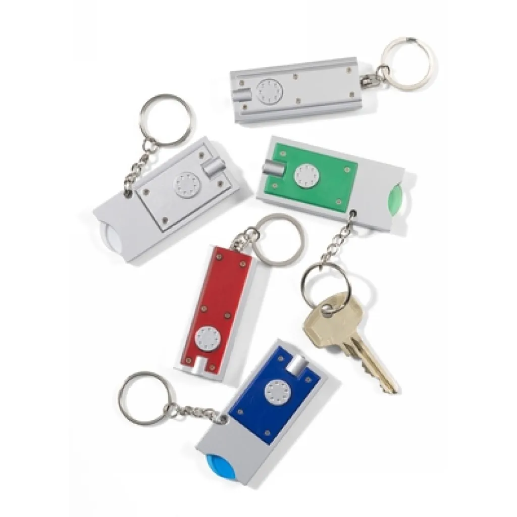 Keyring with white LED light and plastic coin for shopping carts (size € 0,5)