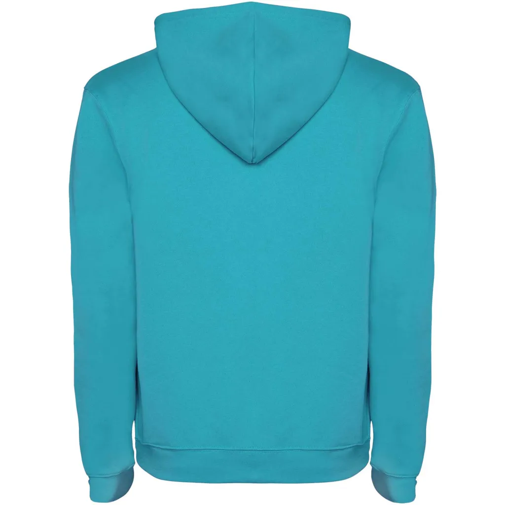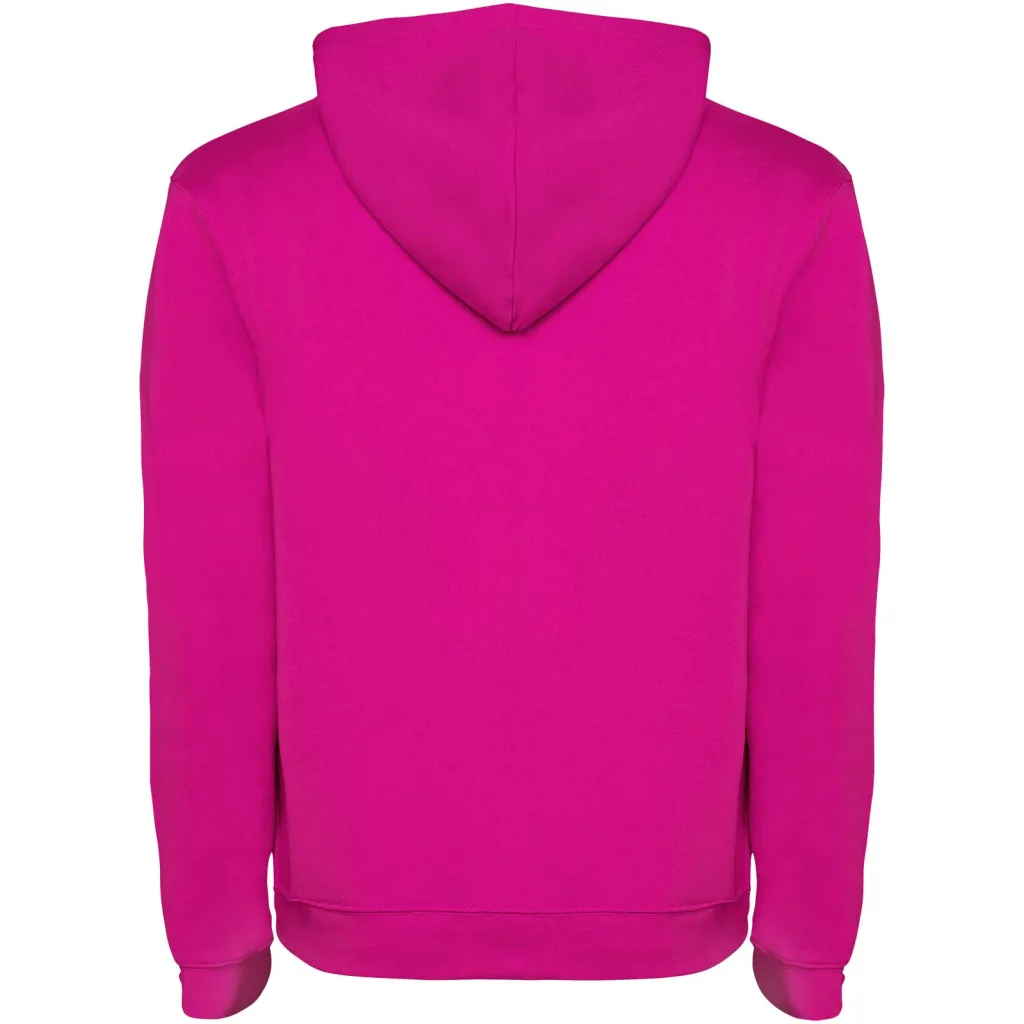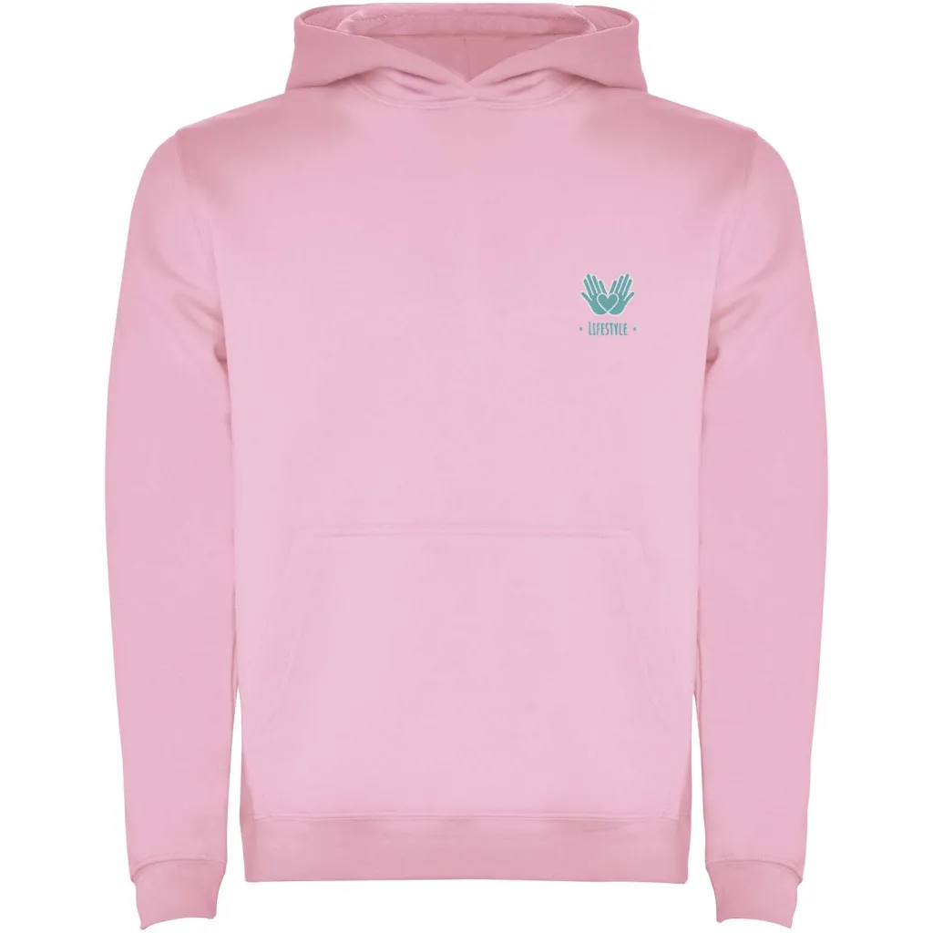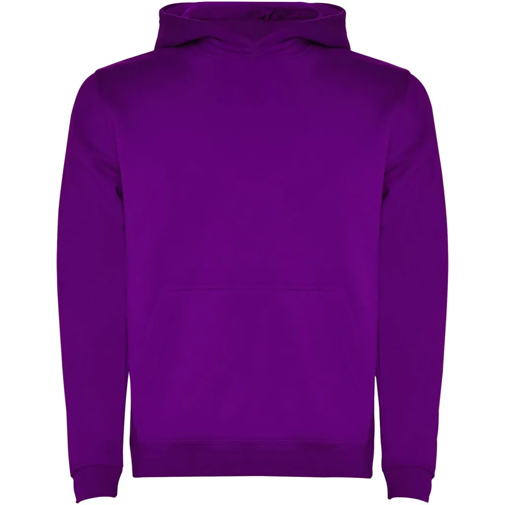 Two-colour hoodie with double fabric. Reinforced covered seams in collar and kangaroo style pocket. 1x1 elastane rib in cuffs and waistband. Removable label. The model is 120 cm and is wearing size 5/6.