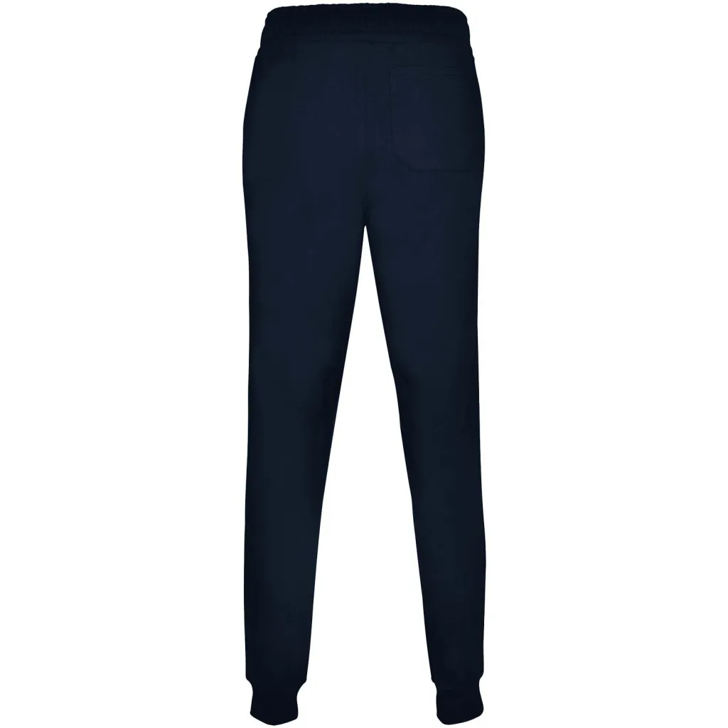 Sports trousers with wide adjustable waistband, drawcord, fitted cuffs on legs, reinforced seams, ribbed side pockets and corner back pocket with stitched view. Removable label.