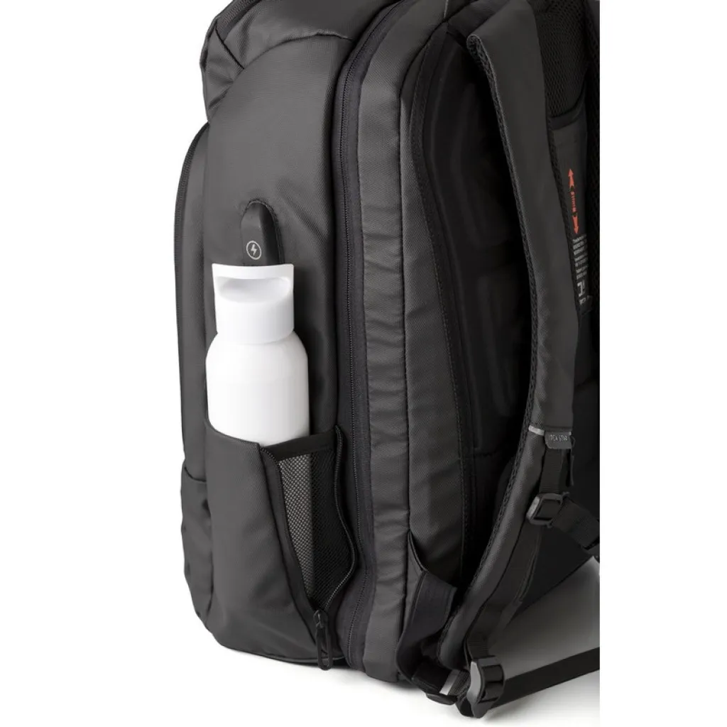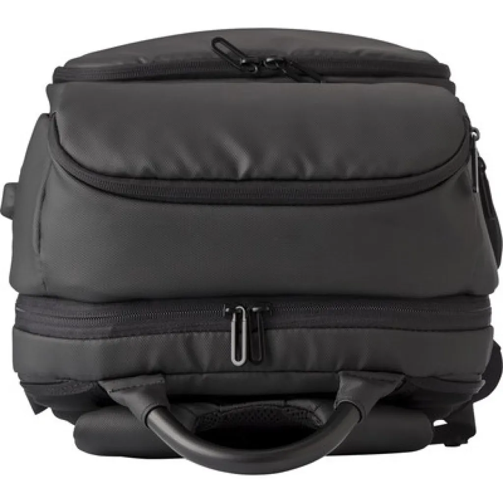 Laptop backpack 15", weight reduction system, zipped main compartment and front pockets, internal pockets, 2 side pockets insulated with aluminium, USB connection (power-bank not included), padded laptop compartment, padded back and shoulder straps