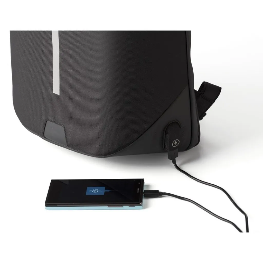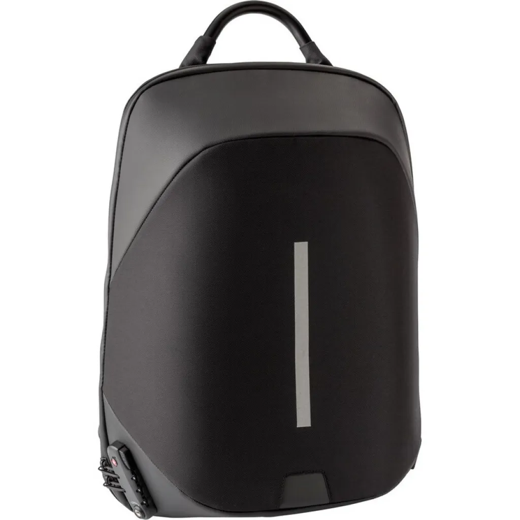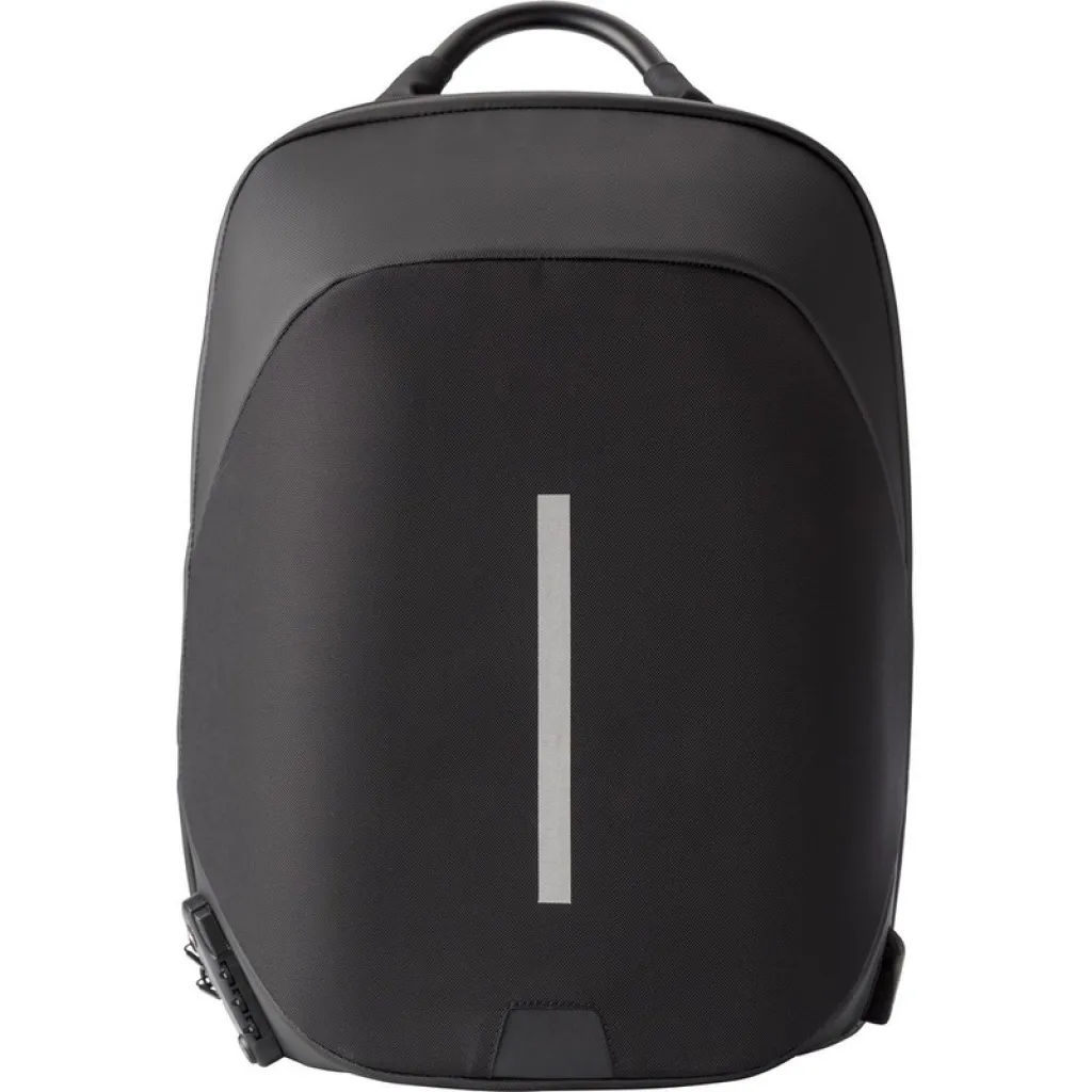 Laptop backpack 15", weight reduction system, zipped main compartment, zippers can be block by combination lock (3 digits), internal pockets, USB connection (power-bank not included), adjustable shoulder straps