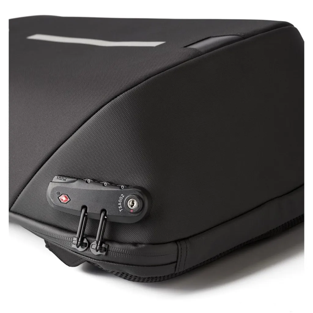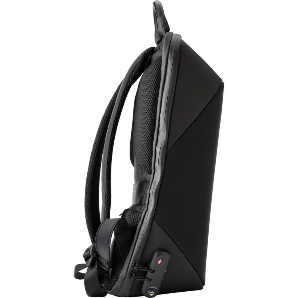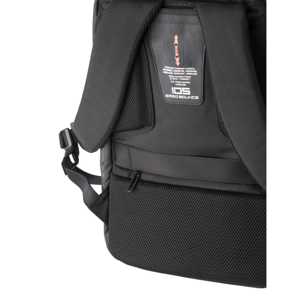 Laptop backpack 15", weight reduction system, zipped main compartment, zippers can be block by combination lock (3 digits), internal pockets, USB connection (power-bank not included), adjustable shoulder straps