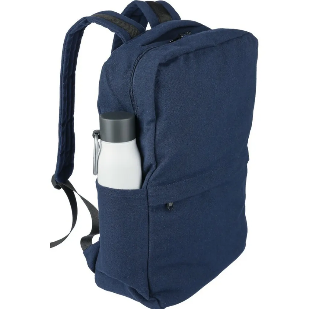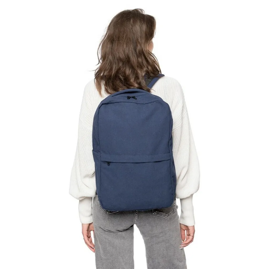 Laptop backpack 15", features a large zippered compartment with a padded 15-inch laptop compartment, two inner compartments, two outer compartments, including a side compartment, a small zippered front pocket, the design includes padded adjustable carrying straps and a handle, capacity: 14L, carrying capacity: 13 kg, product made from recycled polycotton (330 gsm), a 210D polyester lining