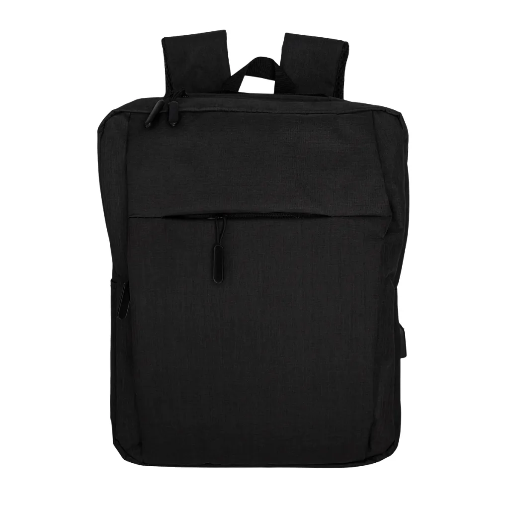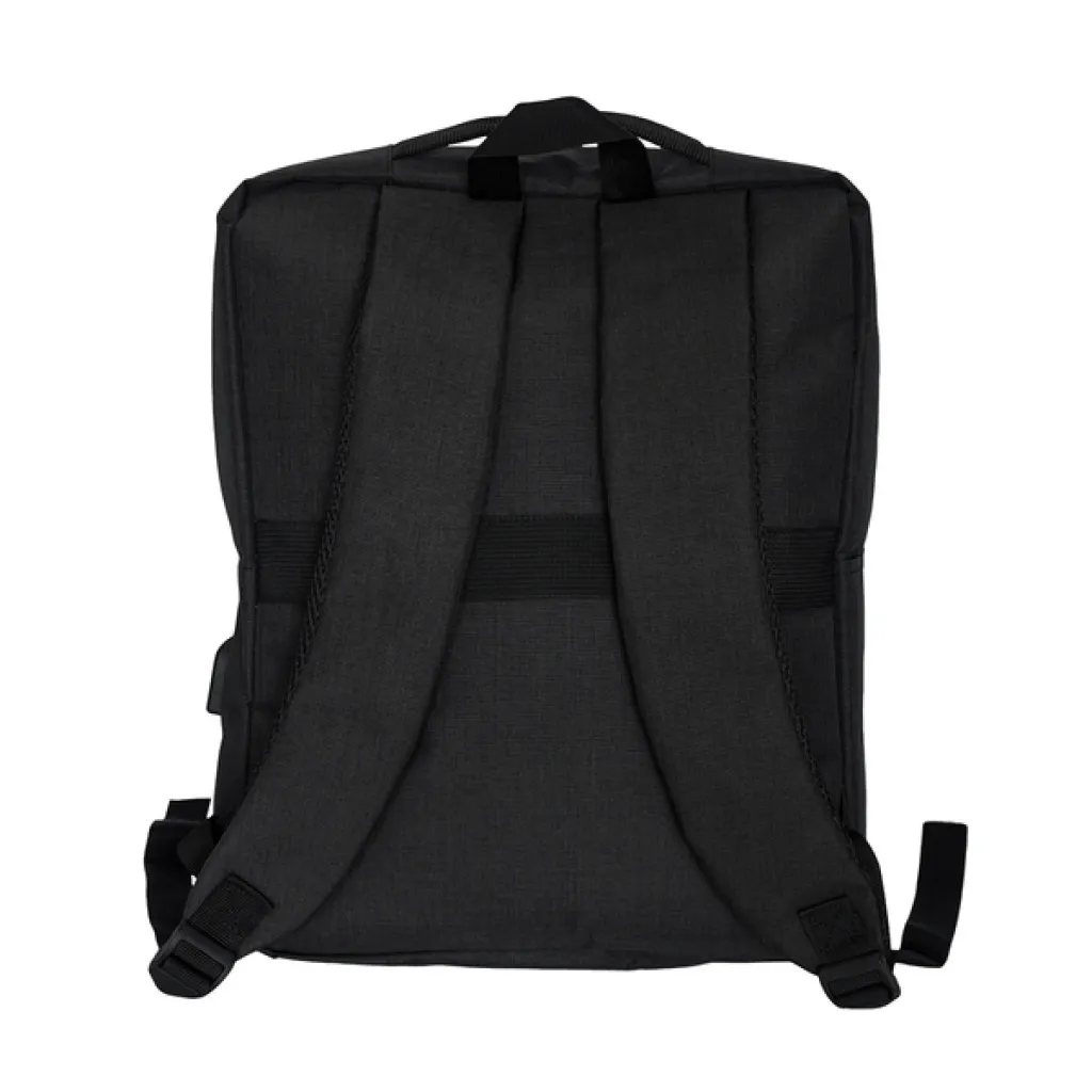 Backpack with a compartment for a 15" laptop. Two zippered pockets on the outside, a USB port on the side, thanks to which you can connect your smartphone to a powerbank. USB cable included. Soft, comfortable back and shoulder straps covered with mesh. The backpack has a strap for a suitcase handle. Inside there are compartments for accessories.