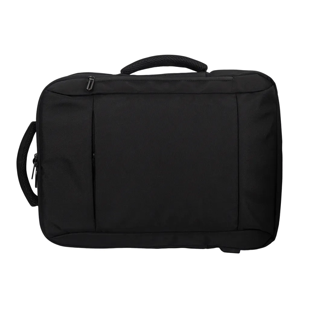 A solid backpack with a separate compartment for a 17" laptop. Made of durable material. It has a main compartment with internal pockets and a key chain hook. It comes with 2 front pockets closed with a zipper. Comfortable wide shoulder straps and a soft back. Built-in USB port, to which you can connect a powerbank and charge your phone (internal cable is included). There are two soft handles at the top and on the side of the backpack. The backpack is perfect for everyday use, as well as for traveling as hand luggage. It has a special strap that allows it to be attached to the handle of a suitcase.