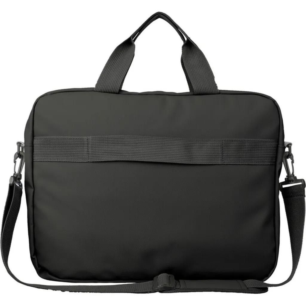 Laptop bag 15", waterproof, front pocket with zipper, large zippered compartment with a laptop compartment with hook and loop closure and several internal pockets, includes an adjustable shoulder strap and two handles for carrying in the hand, product made from PU , polyester, EPE