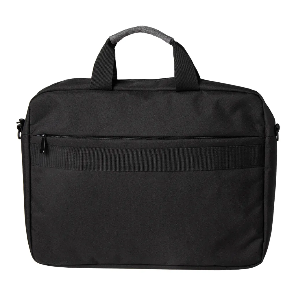 Timeless laptop bag with PVC coated Oxford cloth. Tear-resistant material. A large, stiffened pocket for a 17 " laptop. 6 internal pockets (various sizes) and 3 external pockets allow you to take everything you need with you. A detachable strap allows you to carry the bag on your shoulder. An additional strap on the back allows you to put it on the handle of the suitcase.