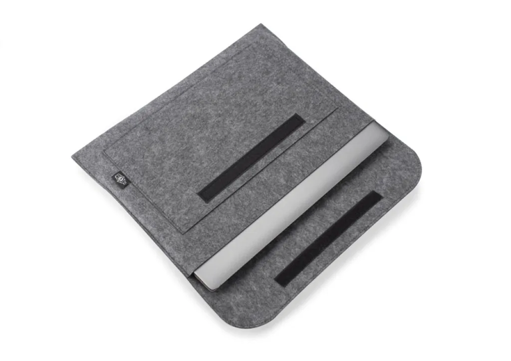 Stylish TARO laptop case made of recycled rPET felt. The case is handy and lightweight and can fit a 15" laptop. An additional pocket allows you to store documents or small items. The handle makes it comfortable to carry. Velcro fastening.