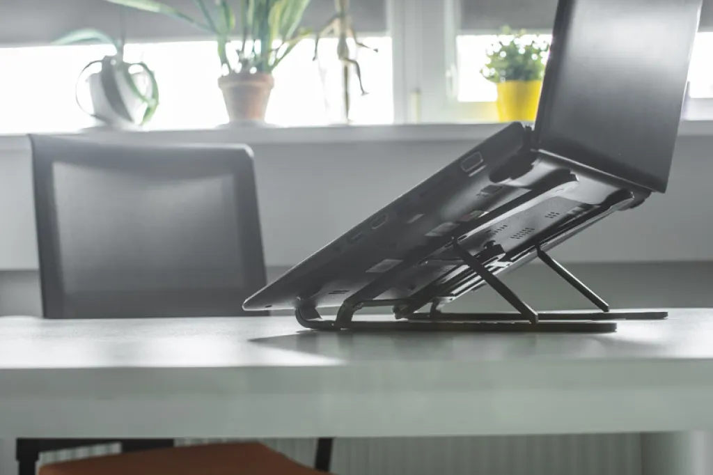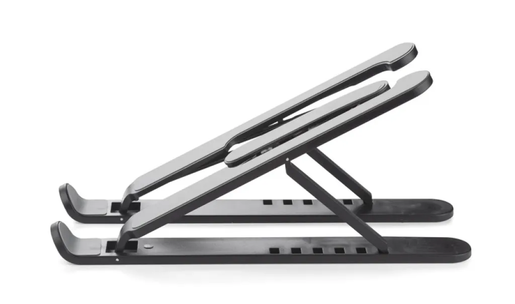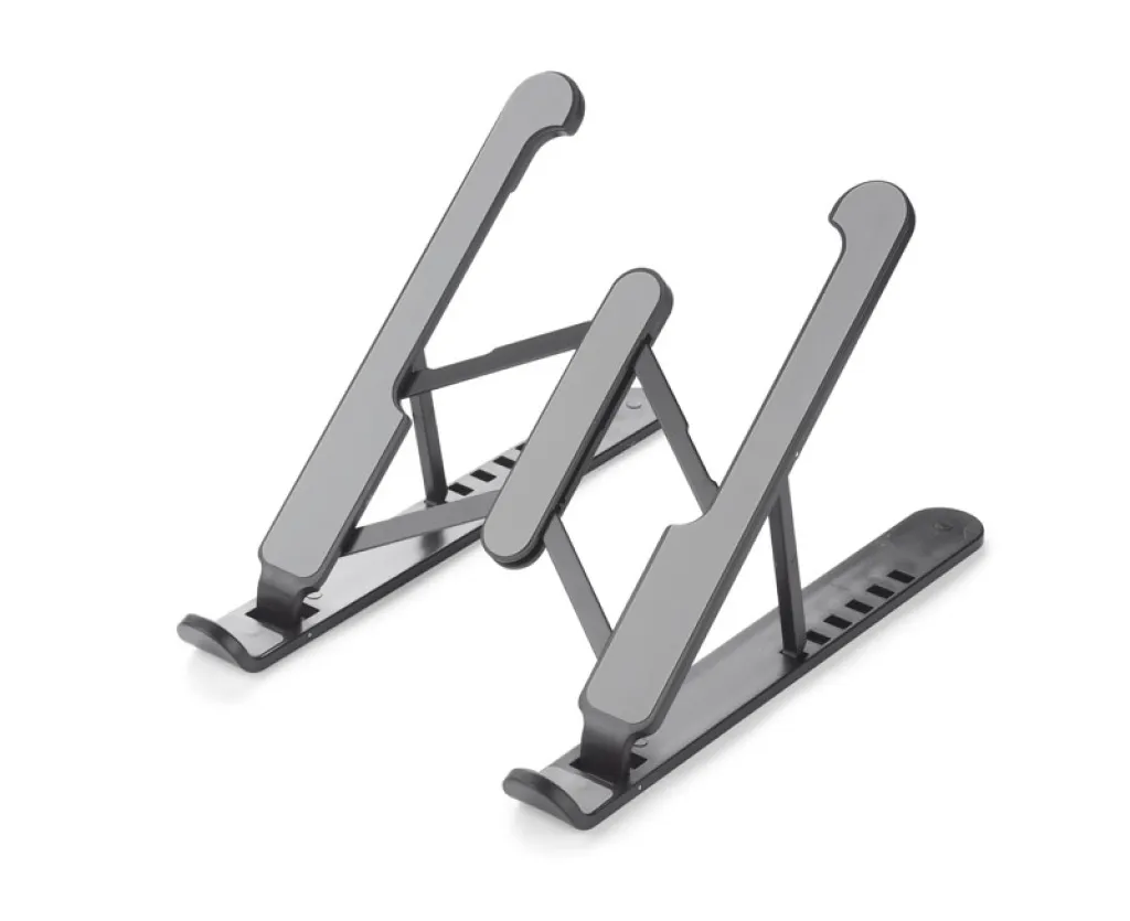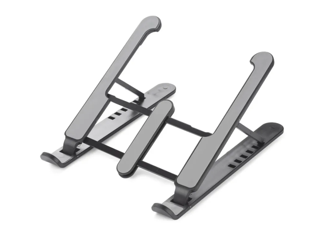The FOLD laptop stand provides greater working comfort and improves cooling of the device. The accessory has a light, yet solid structure that can be folded and adjusted. It allows you to lift the device at various angles, which translates into improved ergonomics and maintaining a healthy position while working on a laptop or tablet. It has silicone anti-slip elements that increase the comfort of use. Provides a stable hold for devices up to 15 inches in size. The set includes a bag made of non-woven fabric.