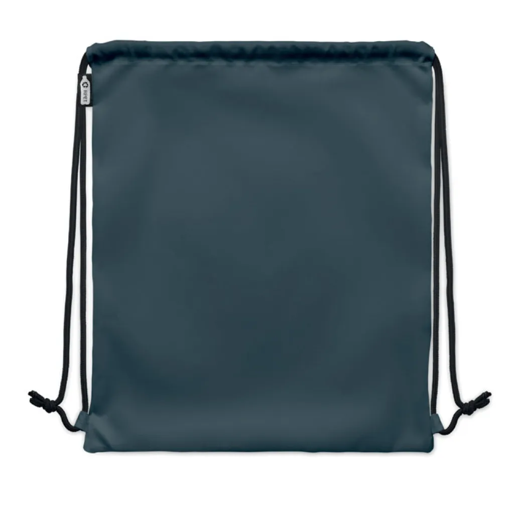Large drawstring bag in 300D RPET polyester with side zippered outer pocket.