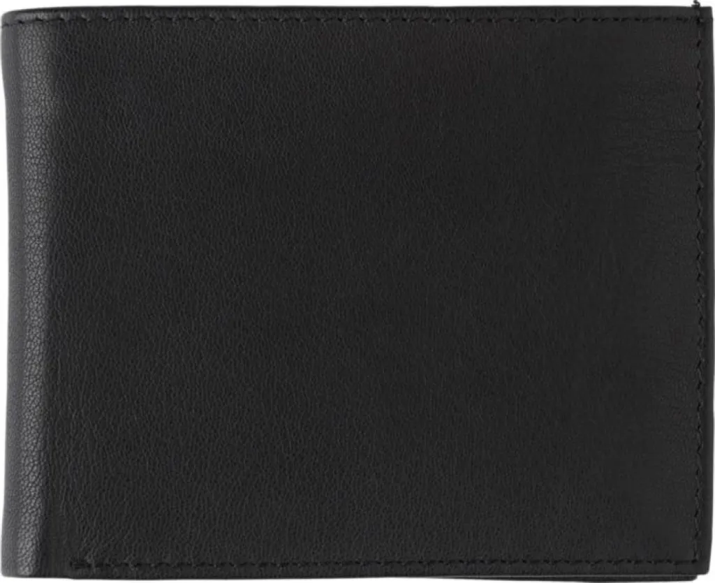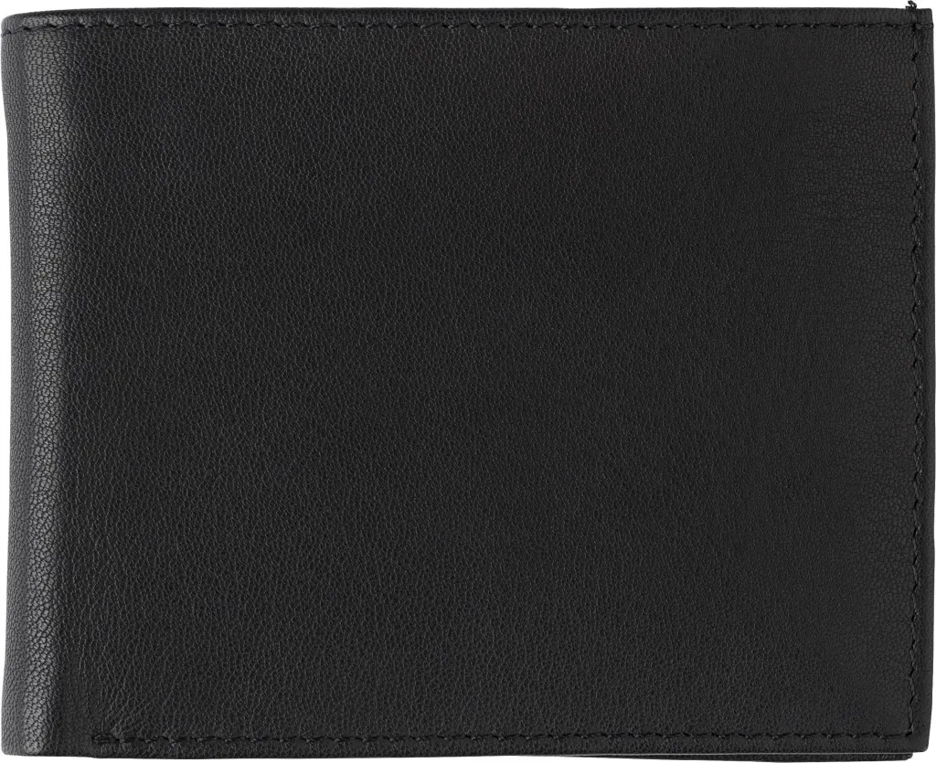 Leather (goat leather) RFID (anti-skimming) purse featuring coin compartment with press stud close and various other pockets for cash or cards.