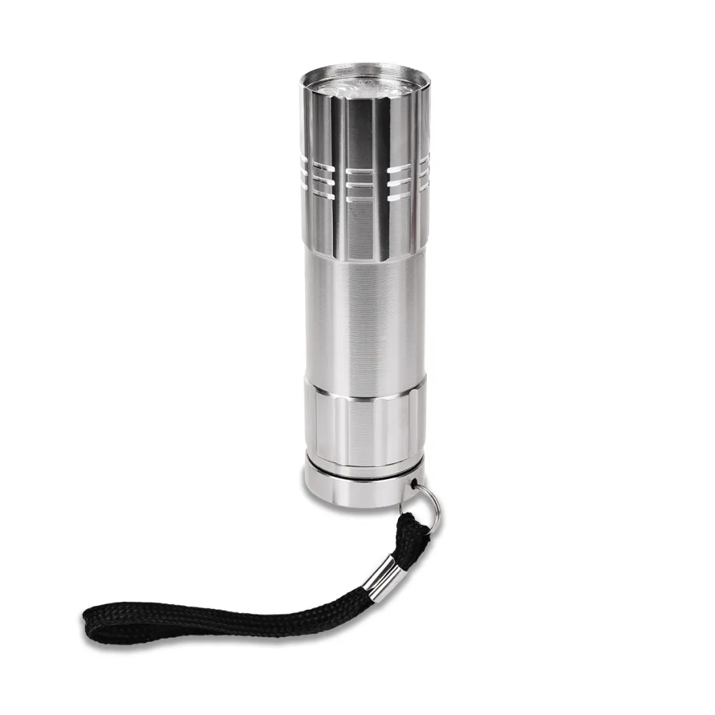 LED lamp made of aluminum with 9 LEDs. 3 AAA batteries included.