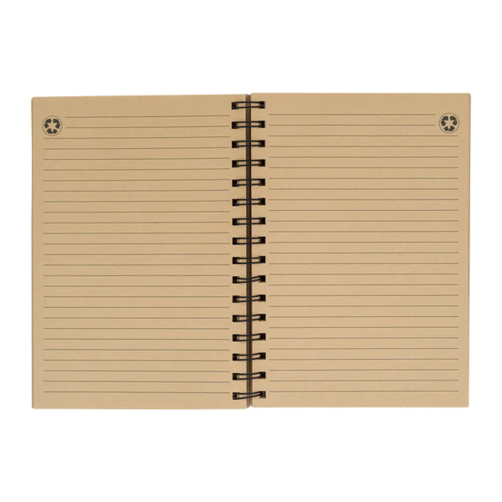 70-page lined notebook made of recycled brown paper (70g/m2). Hard cover (1250 g/m2) on a metal spiral.