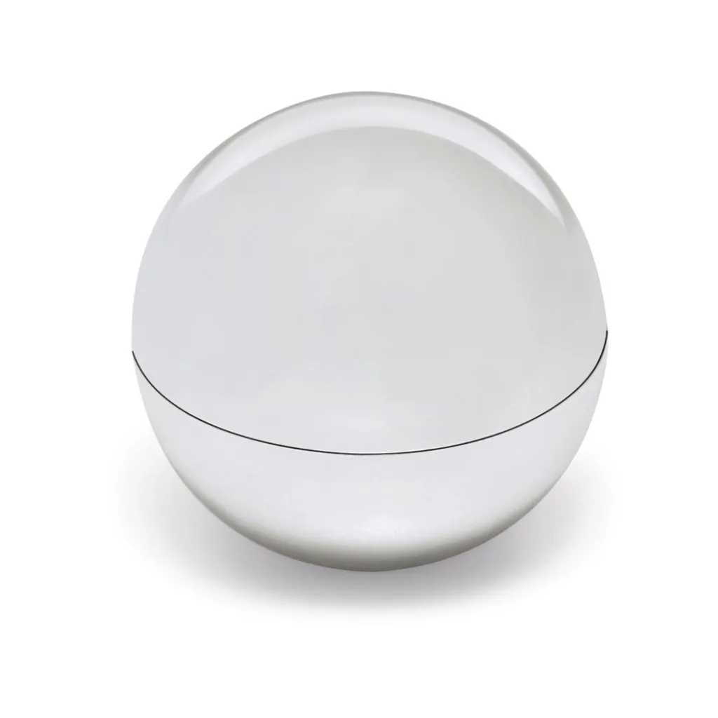 Lip balm with spherical metallic ABS packaging. This lip balm has SPF15 UV protection. ø39 x 38 mm