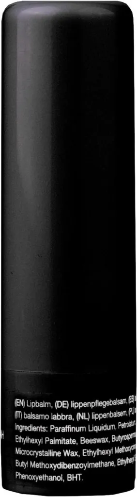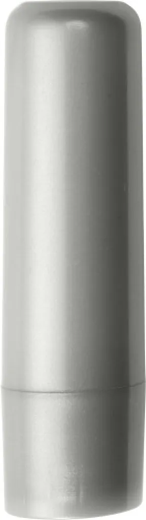 Lip balm with SPF15 protection, in transparent container. The colors white, silver and black have a matt finish.