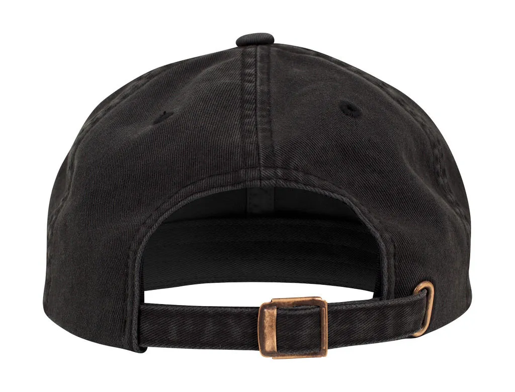 ·100% Cotton ·Destroyed used look ·Low profil ·6 panels ·Peak with 8 rows of stitching ·Matching undervisor ·Precurved peak ·Self fabric size adjuster with metal buckle.