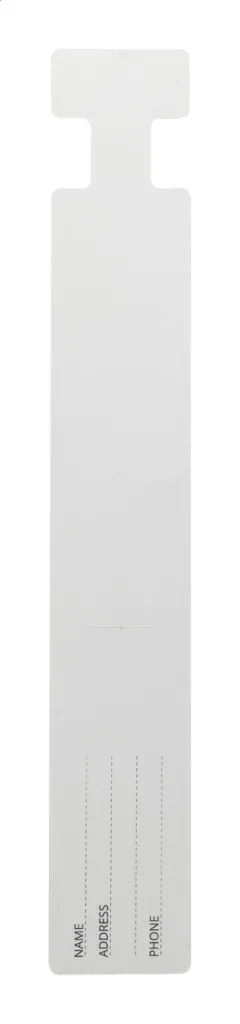 Custom made, water and tearproof paper luggage tag. Price includes full colour printing on front side. MOQ: 250 pcs.