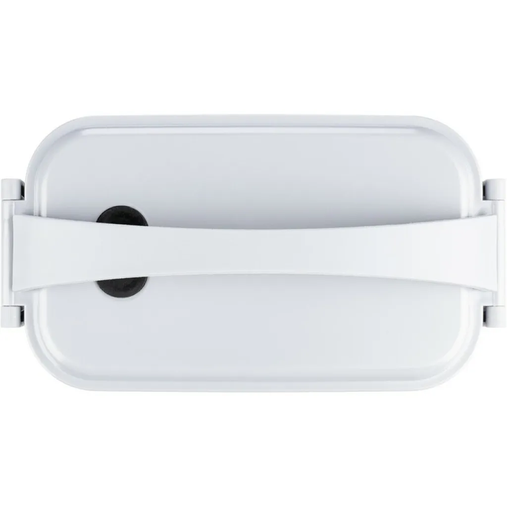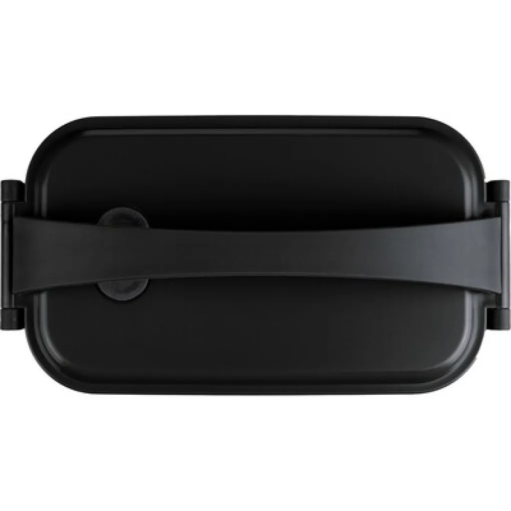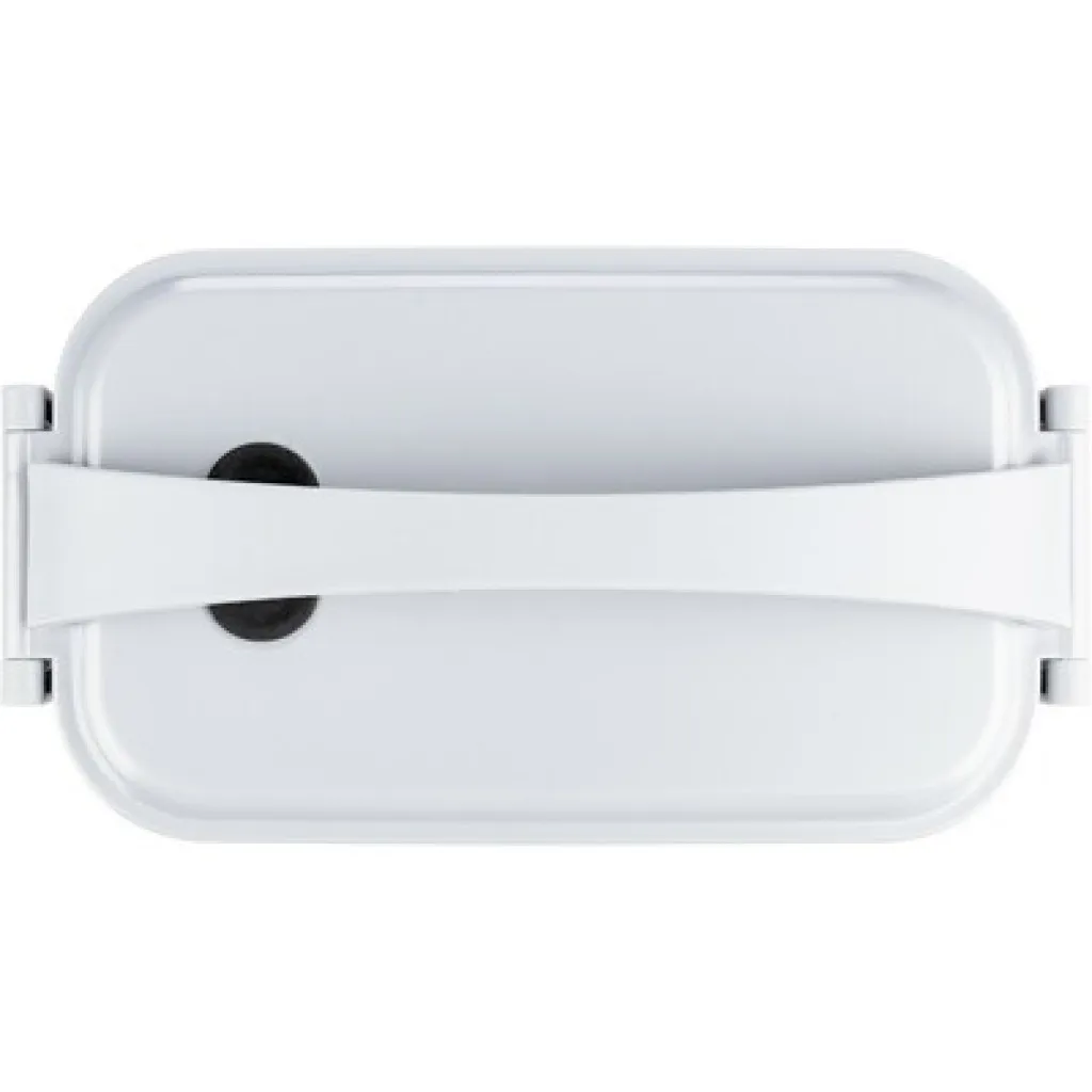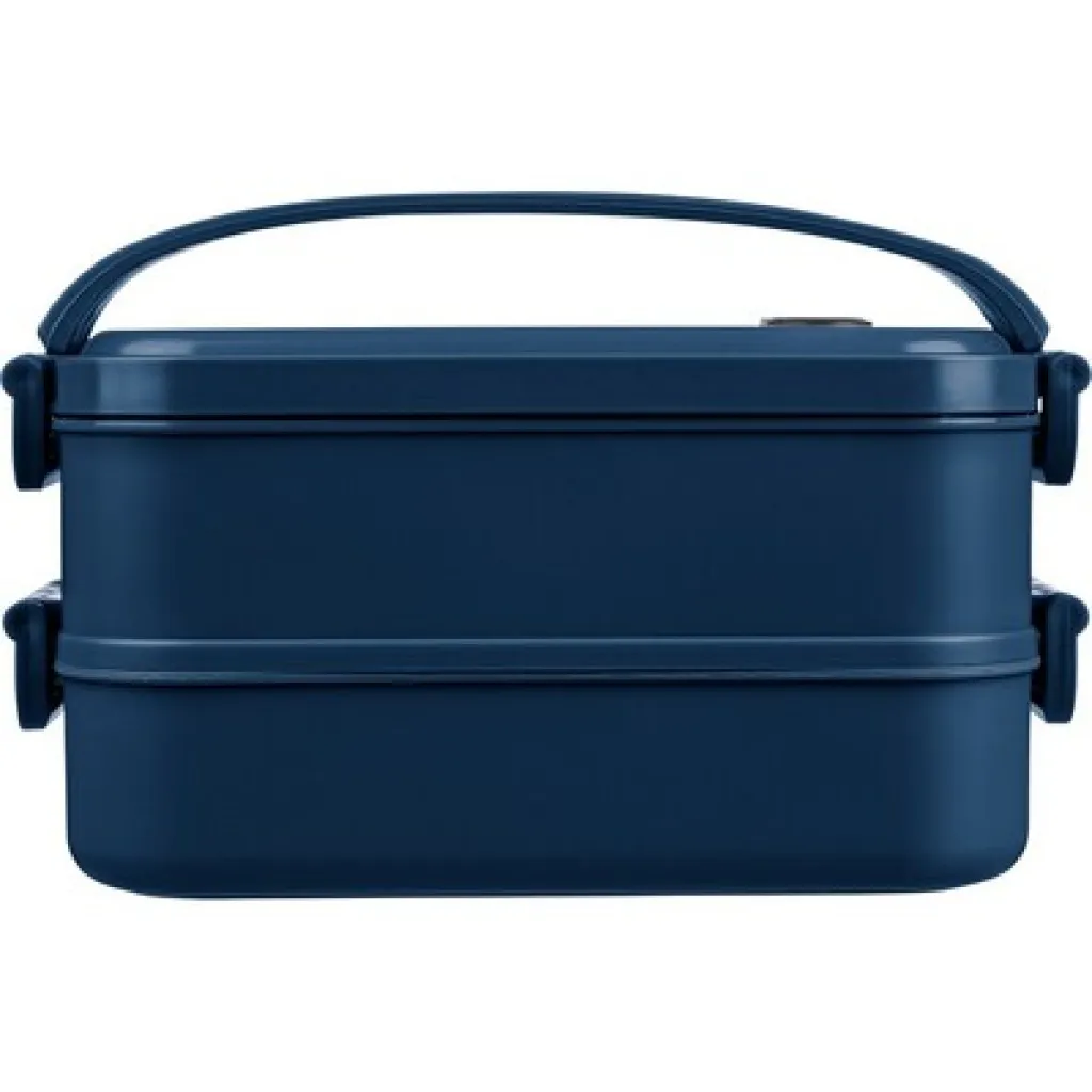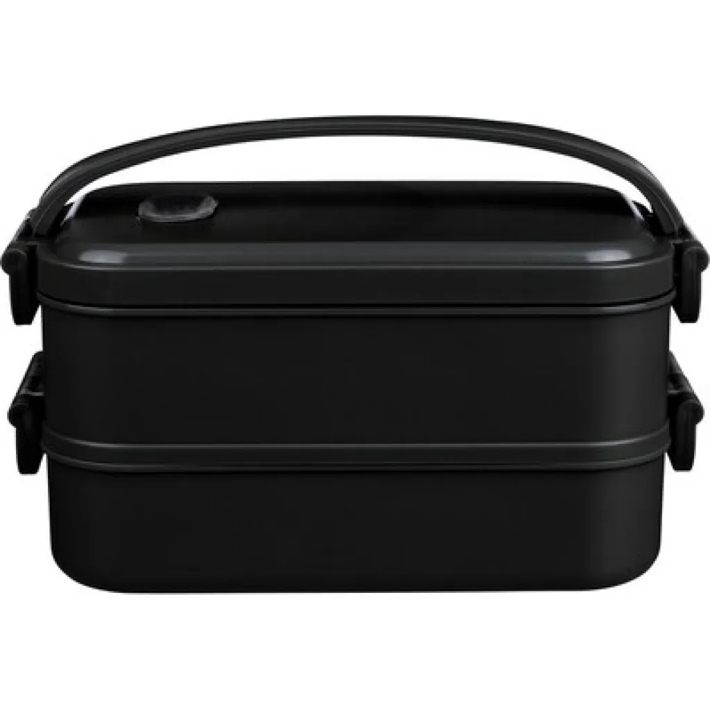 Lunch box with a total capacity of 1600 ml, divided into two 800 ml layers, features a silicone valve suitable for microwave use, a buckle closure, a silicone carrying handle, the lunch box is not dishwasher safe, packaged in bulk, product made from PP