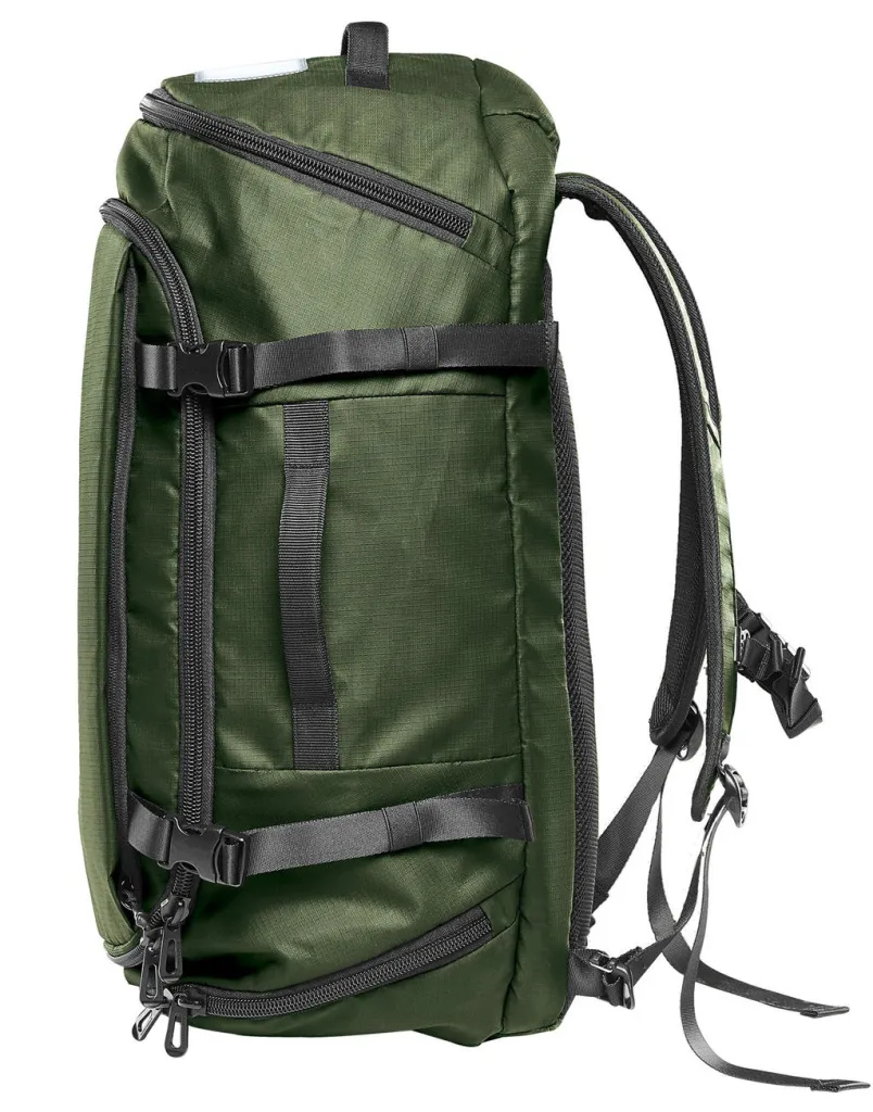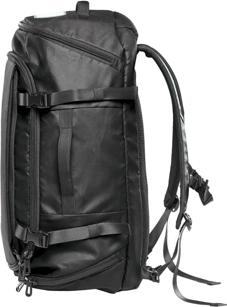 ·Outer: 100% Nylon ·Lining: 100% Polyester ·Dual side carry handles ·Waterproof ·Padded back panel ·Large zipped end pockets ·Large zipped main pockets ·2 internal zipped mesh pockets ·ID-sleeve ·3 external carry handles ·Capacity: 40 litres ·Dimensions: 58,5 x 33 x 19 cm.