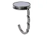 Metal bag hanger with gunmetal finish and shiny plate. With magnetic closure. Delivered in black paper box.
