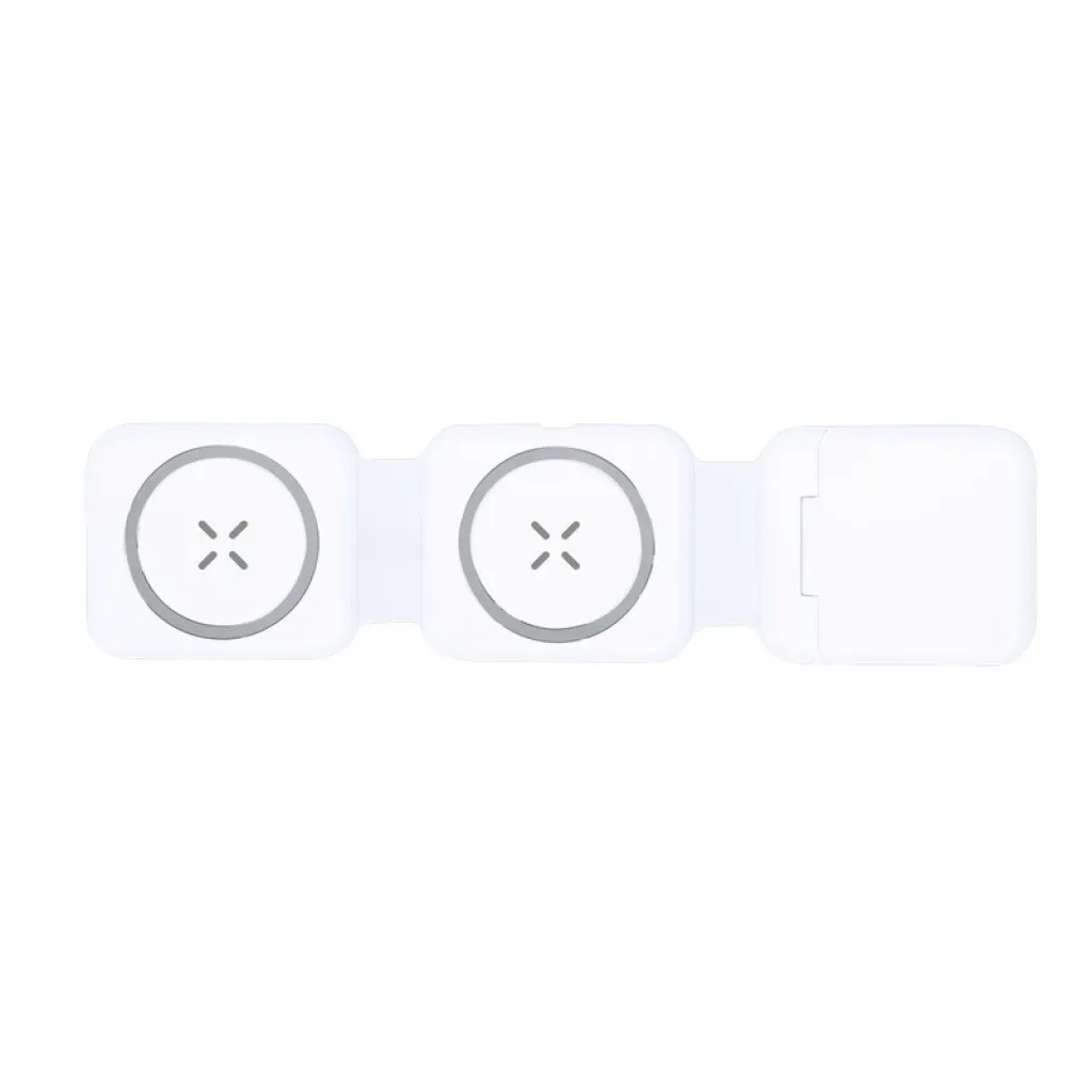 Magnetic wireless charger 15W, works with devices with inductive charging function, magnetic alignment suitable for compatible devices only, can charge two devices simultaneously, phone stand, USB type C input 5-9V/1-1.67A, charging and synchronization cable with 2 plugs
