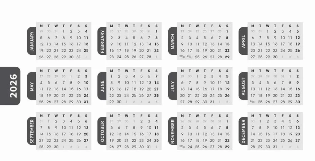 print: both sided 4/4, there is a calendar for the whole year at the back of every sheet