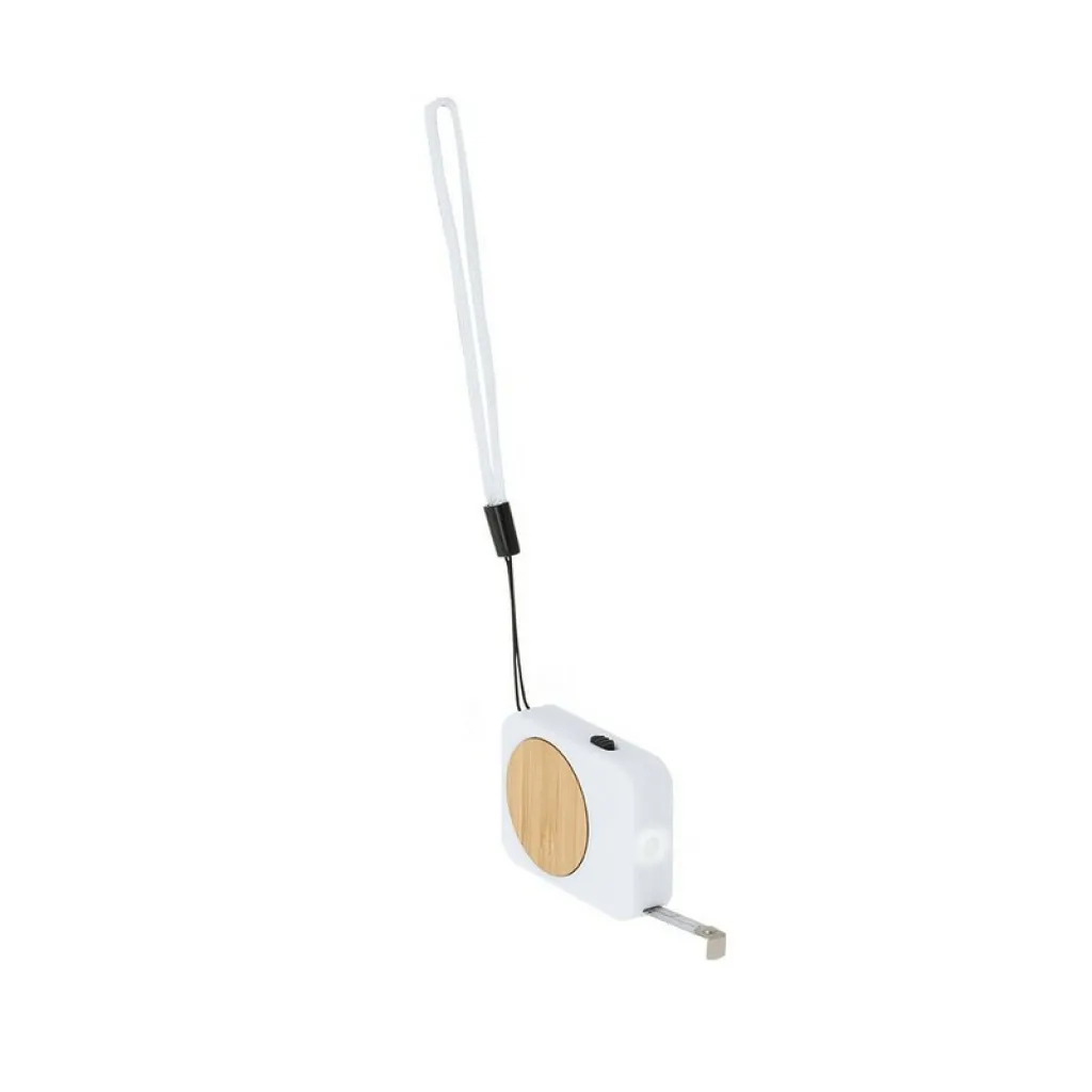 Measuring tape 1 m with attached band for easier carrying, features 1 LED light, product made from bamboo and ABS