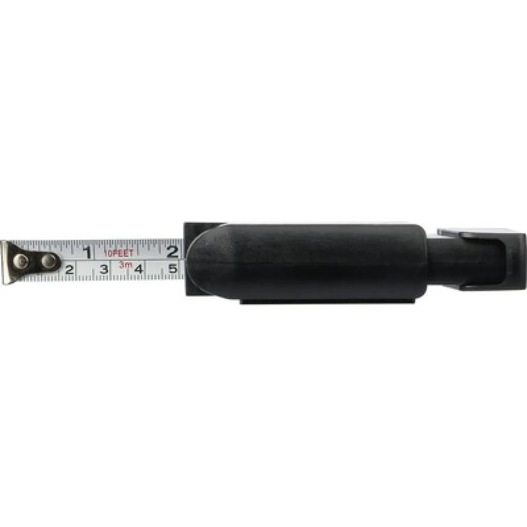 Measure 3m, includes level and 5 bits, so it can be used as a screwdriver, packed in a brown carton box, product made from ABS and bamboo