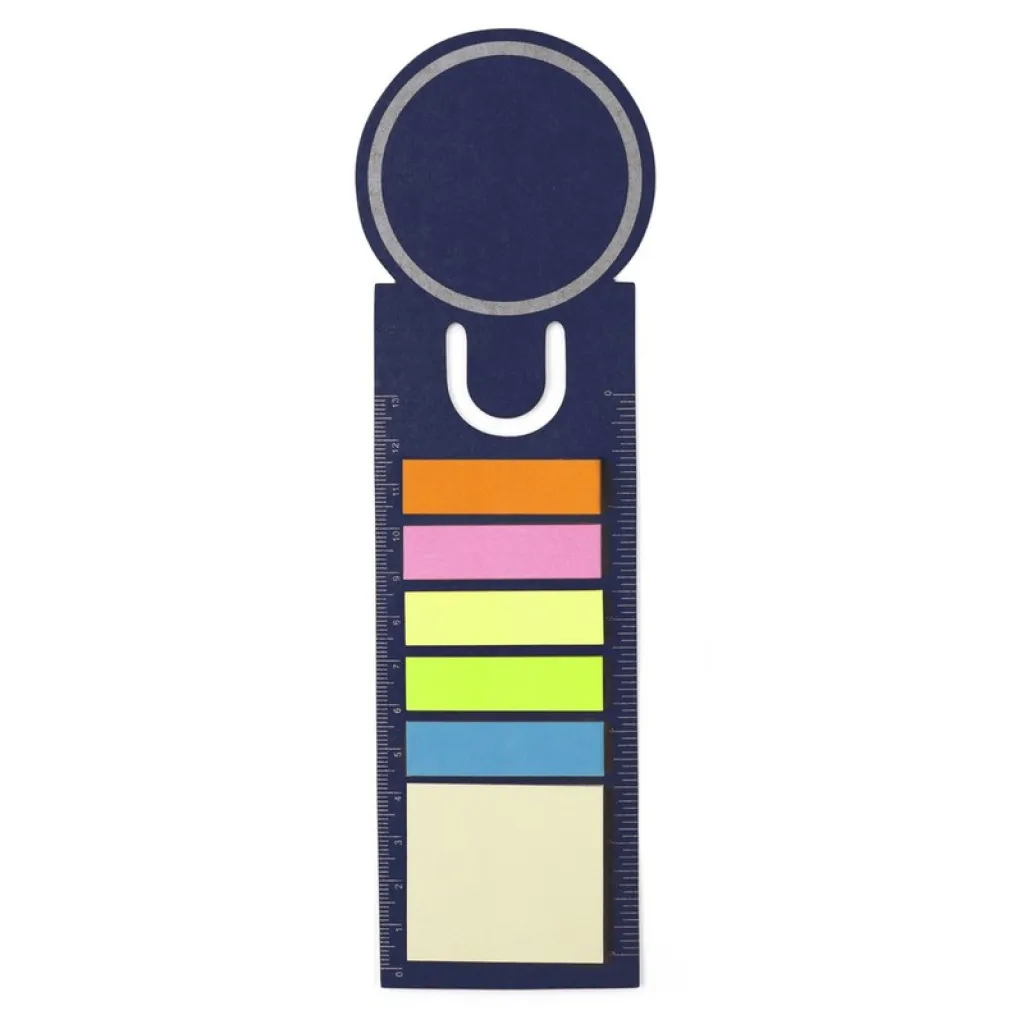 Memo holder, sticky notes, bookmark, notebook, ruler