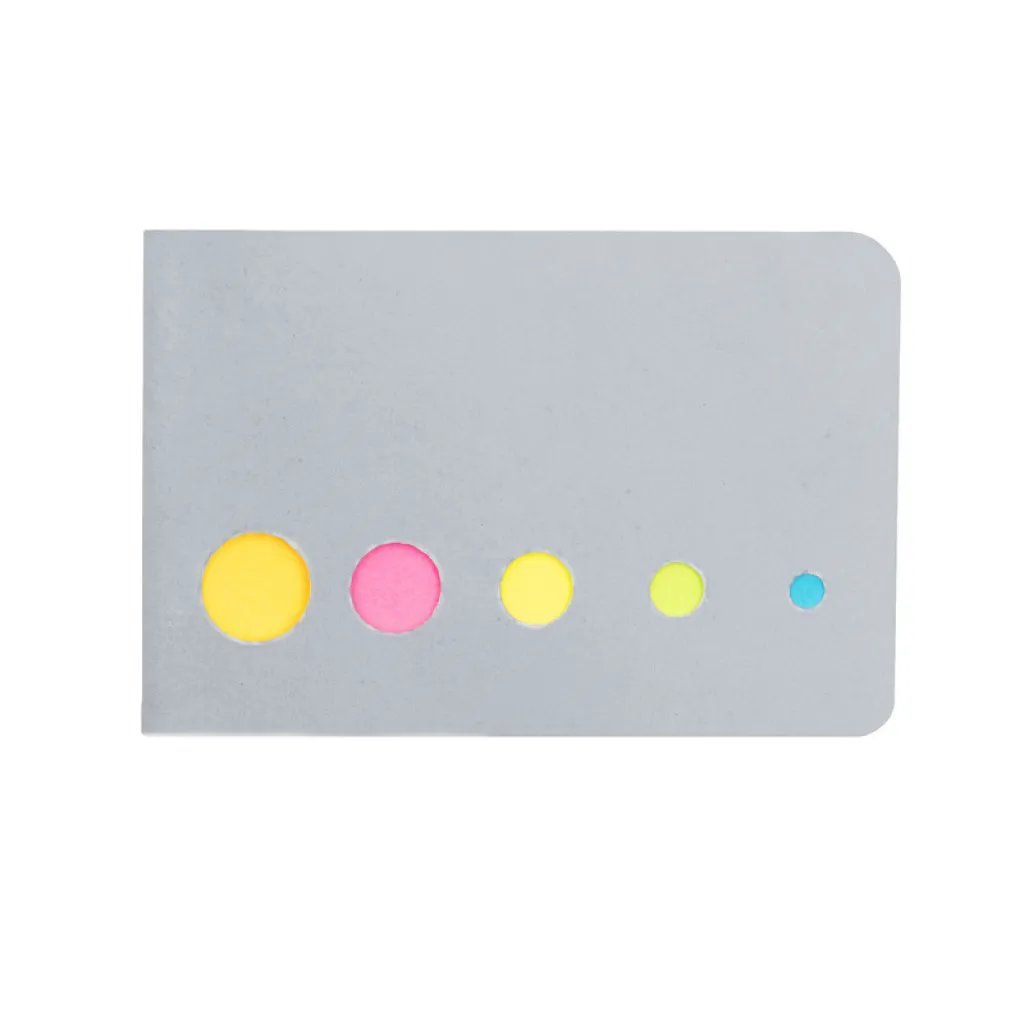 Card cover holding 5 different coloured sticky notes, each with 20 sheets