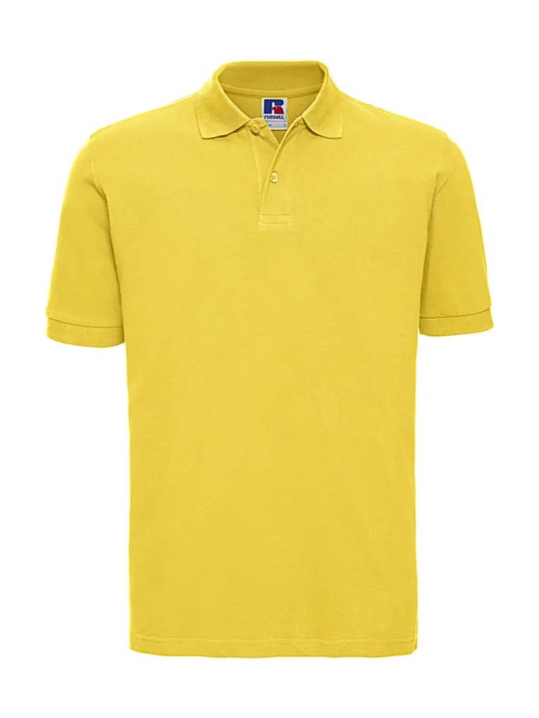 ·200 g/m² (White: 195 g/m²) ·100% Cotton, combed ·Neckband ·Reinforced shoulders ·2-button placket ·Buttons in matching colour ·Smooth knit cuffs ·Double seam on hem ·Side vents.