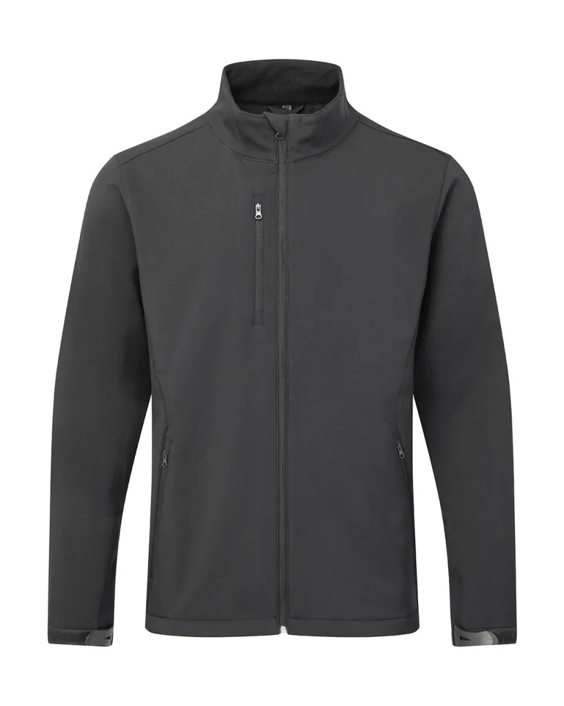 ·280 g/m² ·Outer: 96% Polyester, 4% Elastane (3 layer Softshell fabric) ·Mid-layer: Hydrostatic membrane ·Inner: Anti-pilling microfleece ·Waterproof (3000 mm) and breathable (1000 g/m² in 24h) ·Full zip with chin-guard ·Chest pocket and side pockets with zip ·Adjustable cuffs ·2 inside pockets (1 zipped + 1 with hook&loop fastener) ·Enhanced shape & designed stitching for best fit ·Longer on the back ·Tagless.