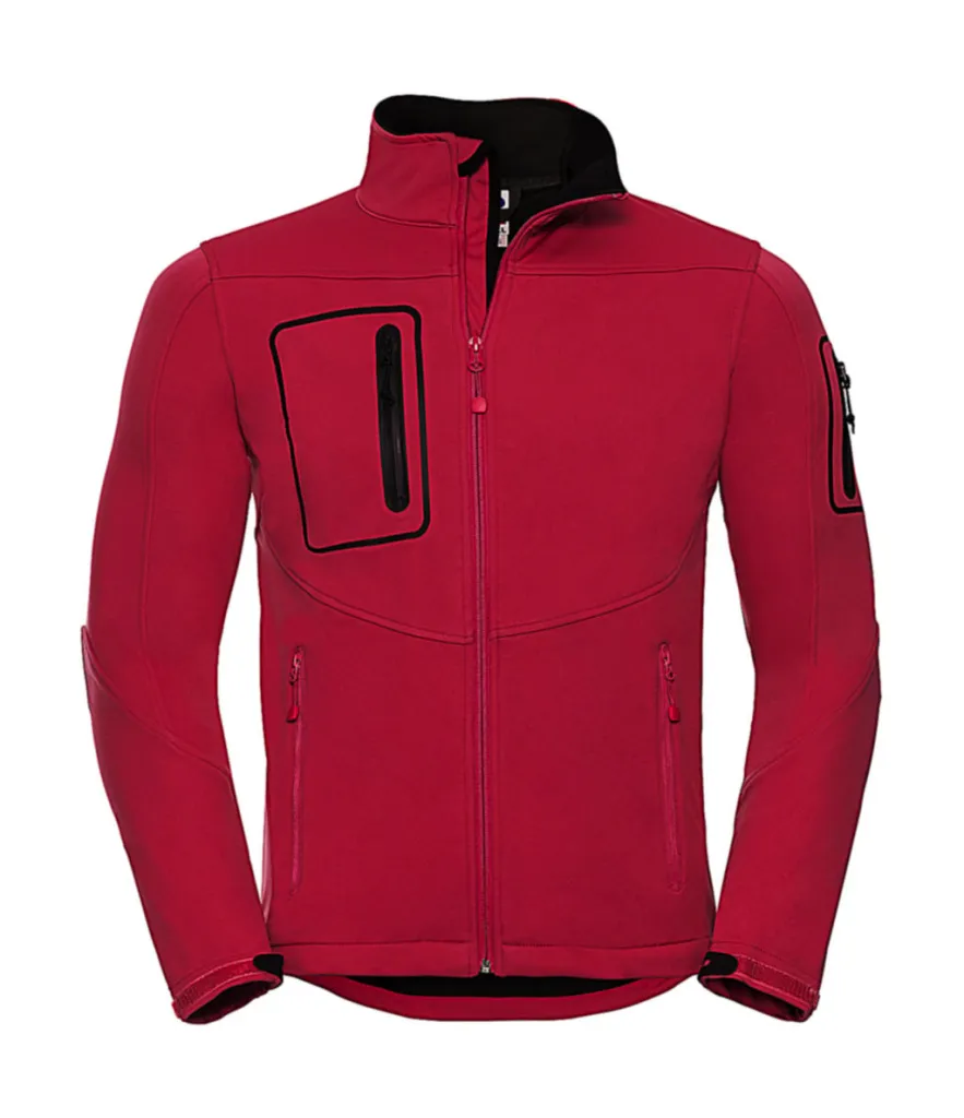 ·250 g/m² ·Outer fabric: 100% Polyester (DWR coating), waterproof ·Inner fabric: knitted polyester lining ·Bonded hydrophobic membrane, water resistant to 5000 mm ·Breathable (up to 5000 g/m² in 24h) 3-layer soft shell material ·YKK zipper with chin protection and wind protection border inside ·Laser cut chest and arm pockets with watertight zippers ·Side pockets with zippers ·Inside pocket for MP3 player ·Adjustable sleeve ends ·Elastic drawcord with stoppers on bottom hem ·Tight fit.