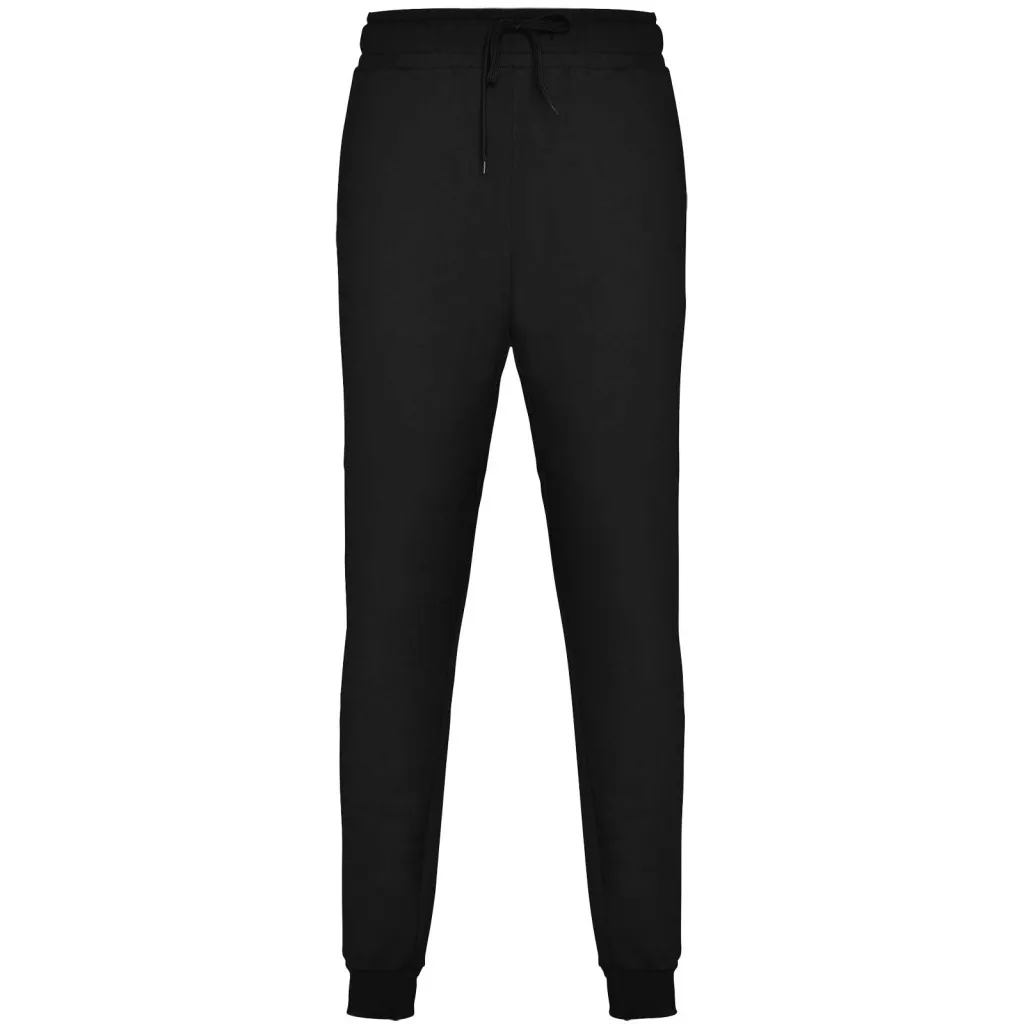 Sports trousers with wide adjustable waistband, drawcord, fitted cuffs on legs, reinforced seams, ribbed side pockets and corner back pocket with stitched view. Removable label.