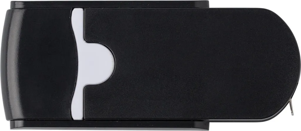 Metal and plastic multifunctional tool with two sizes of flat head and Philips head screwdrivers and measuring tape (1 meter).