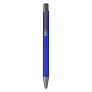Soft touch metal ball pen with gray metal parts.