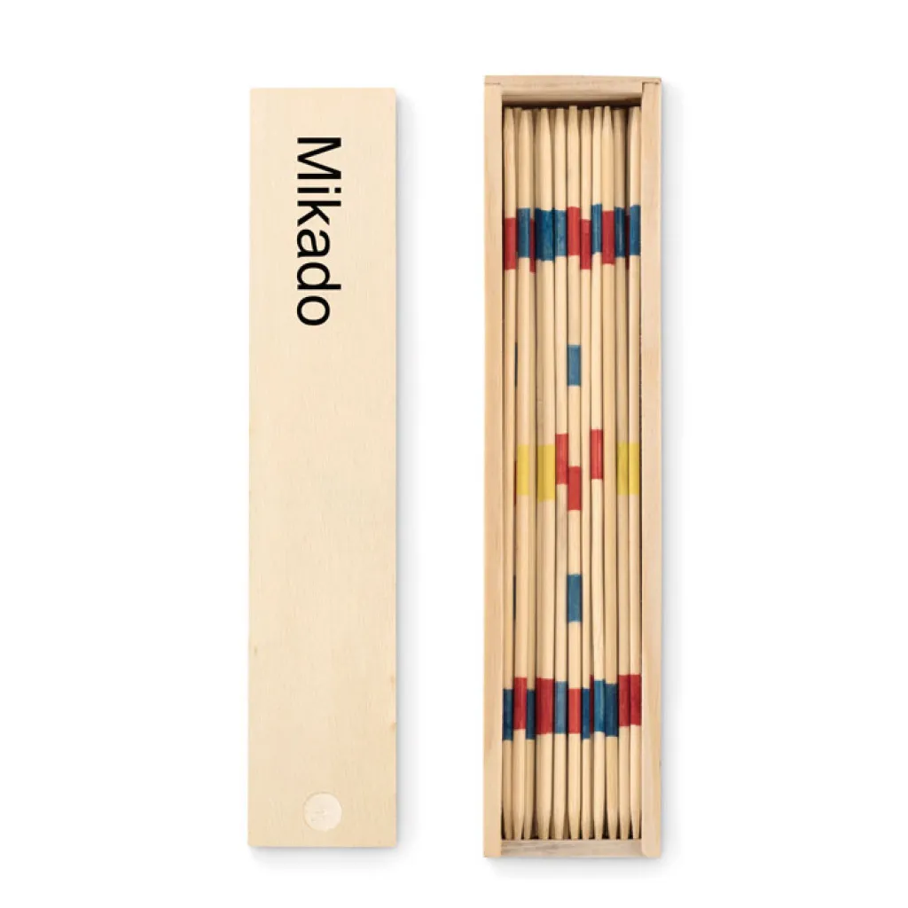 Mikado set in wood presented in wooden box.
