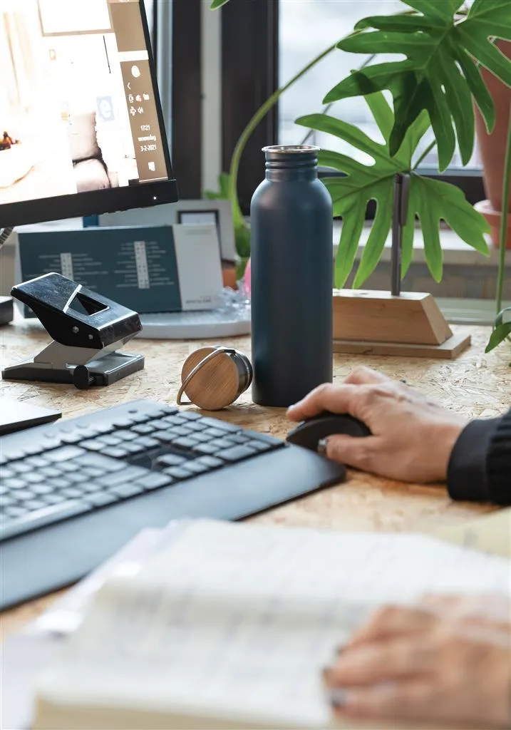 Modern stainless steel bottle with bamboo lid - XD Collection