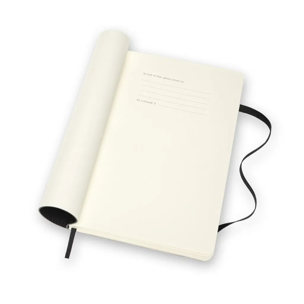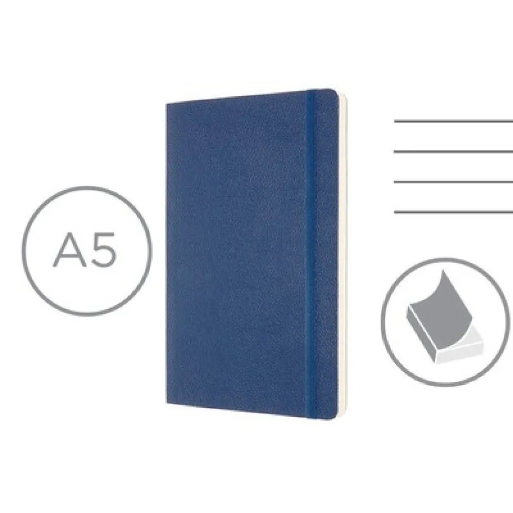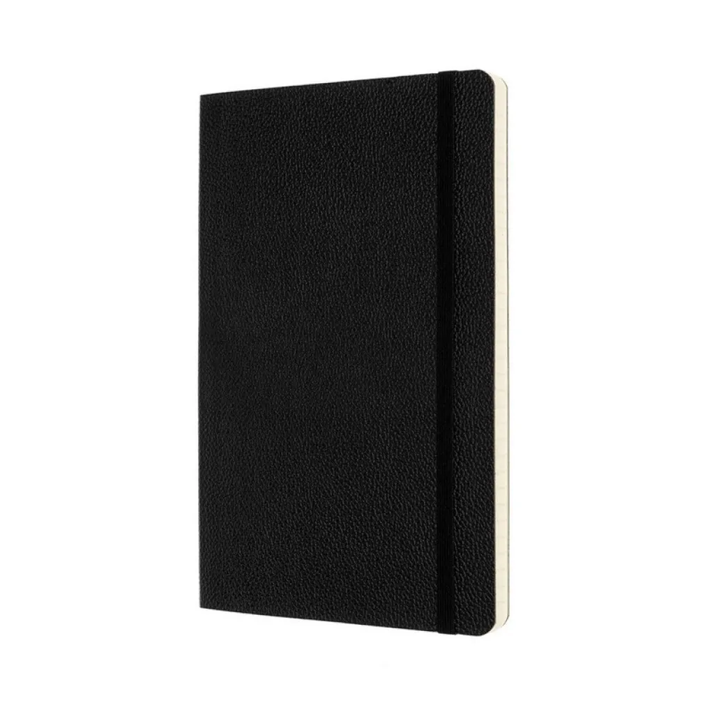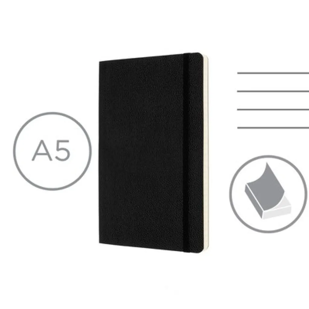 MOLESKINE classic leather notebook (approx. A5, large), 176 lined pages, soft cover, inner pocket, ribbon marker and elastic band for closing, packed in elegant gift box